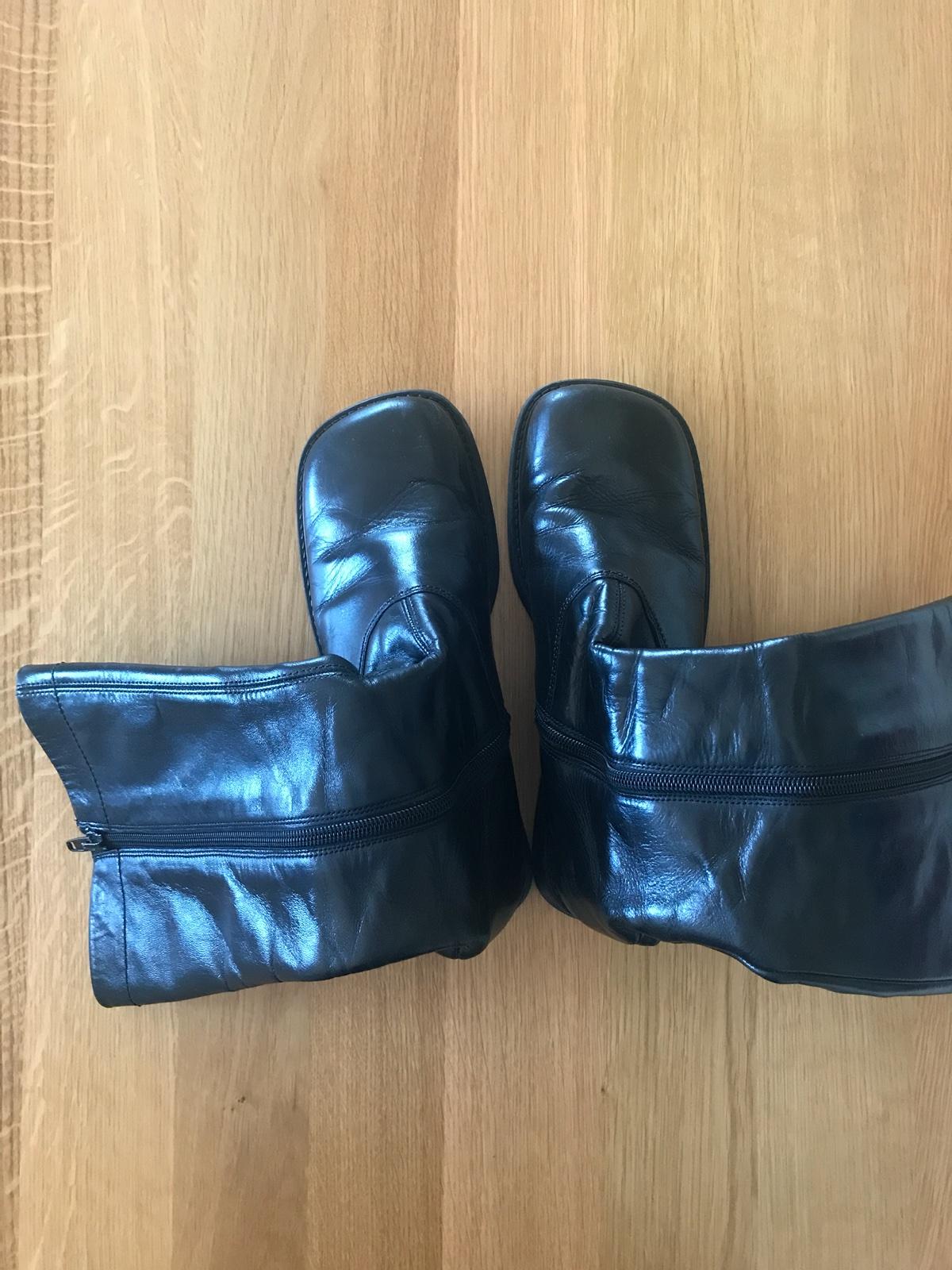 Celokožené čierne vyššie čižmy so širšou špicou čižmičky tak aby sa dieťaťu nestláčali prsty pri chodení, sú veľmi pohodlné. Čižmičky boli nosené sporadicky k sukničke, sú bez poškodenia.