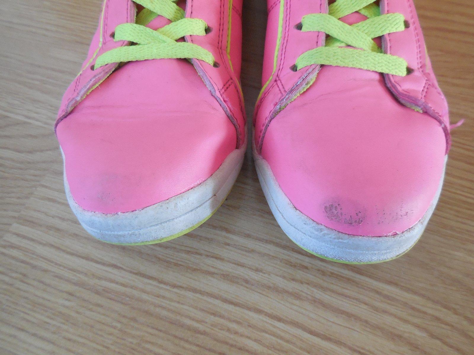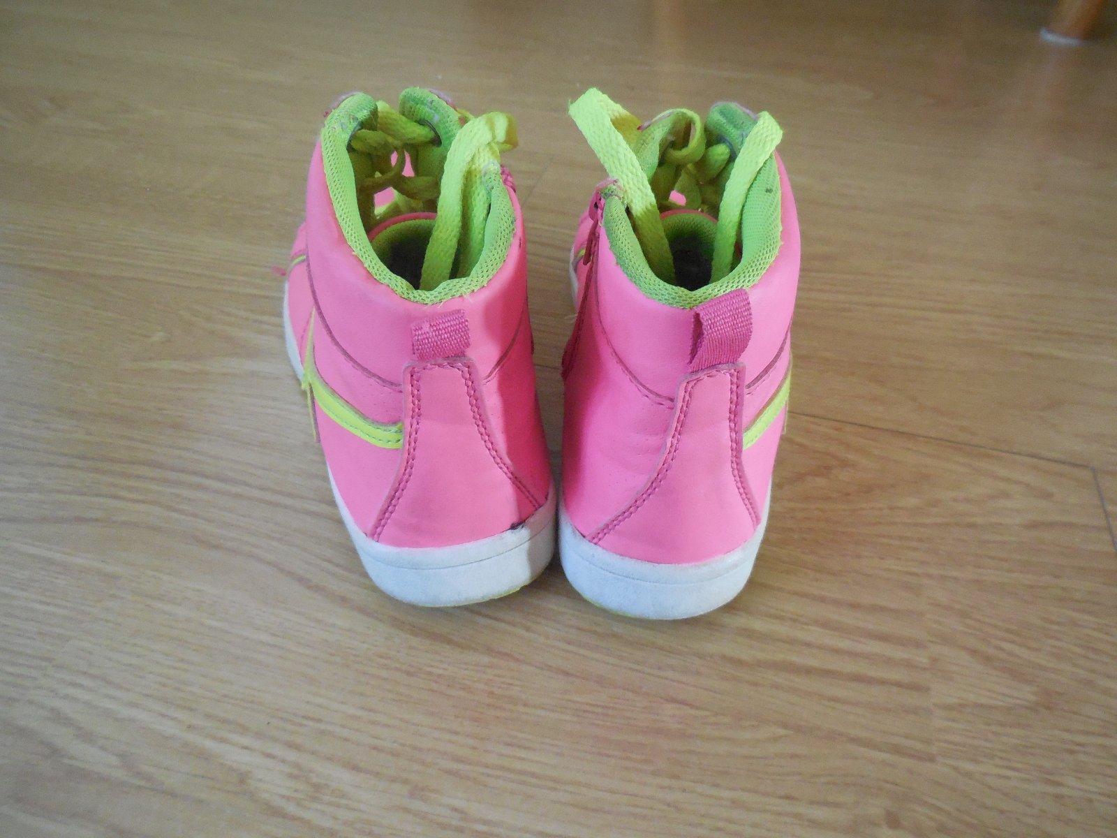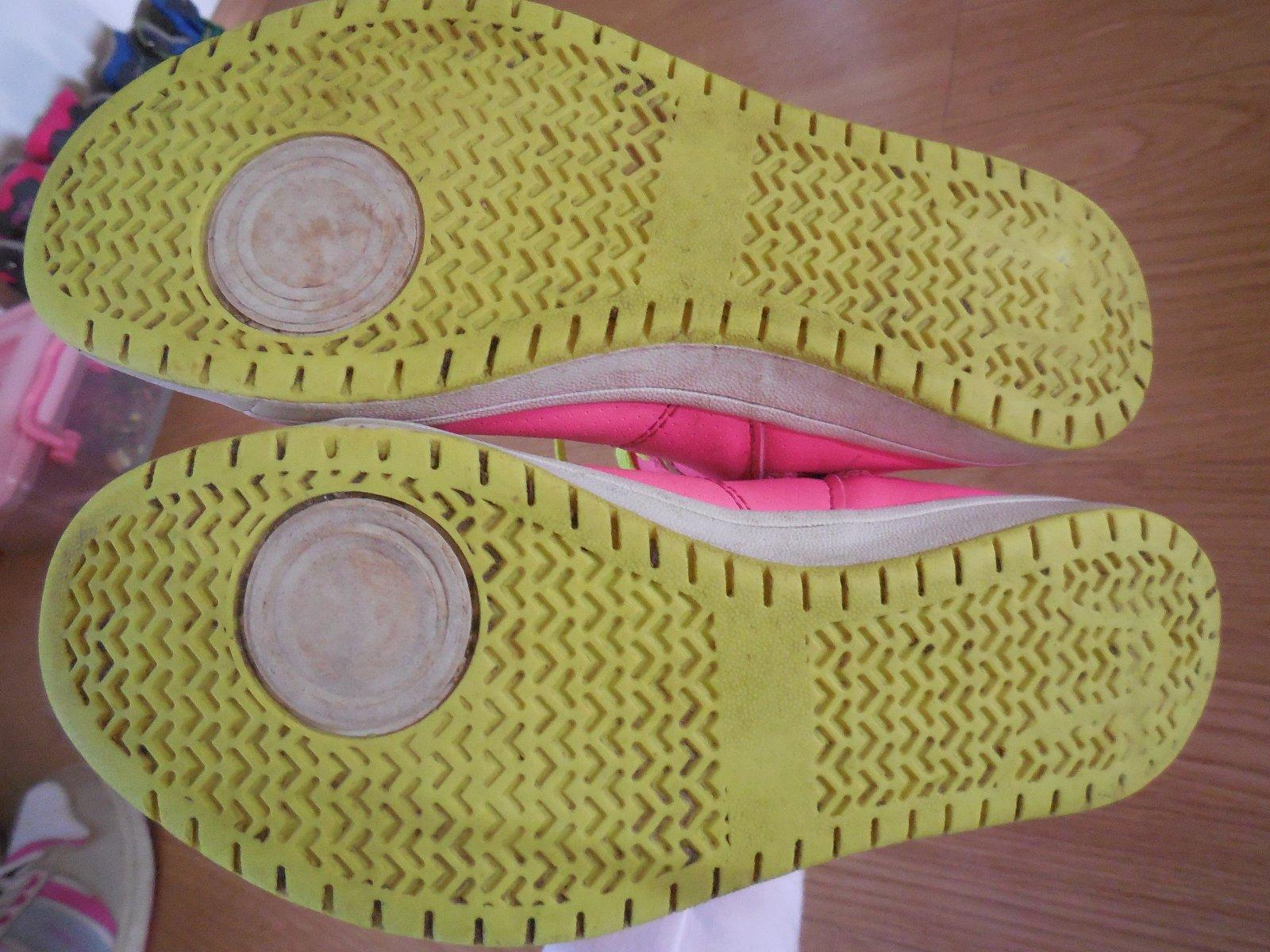 Tenisky sú ako nové, vzhľadom na koronu použité len párkrát v telocvični. VD 22,5 cm. Jedinou chybou je meno z vnútornej strany podrážok.
