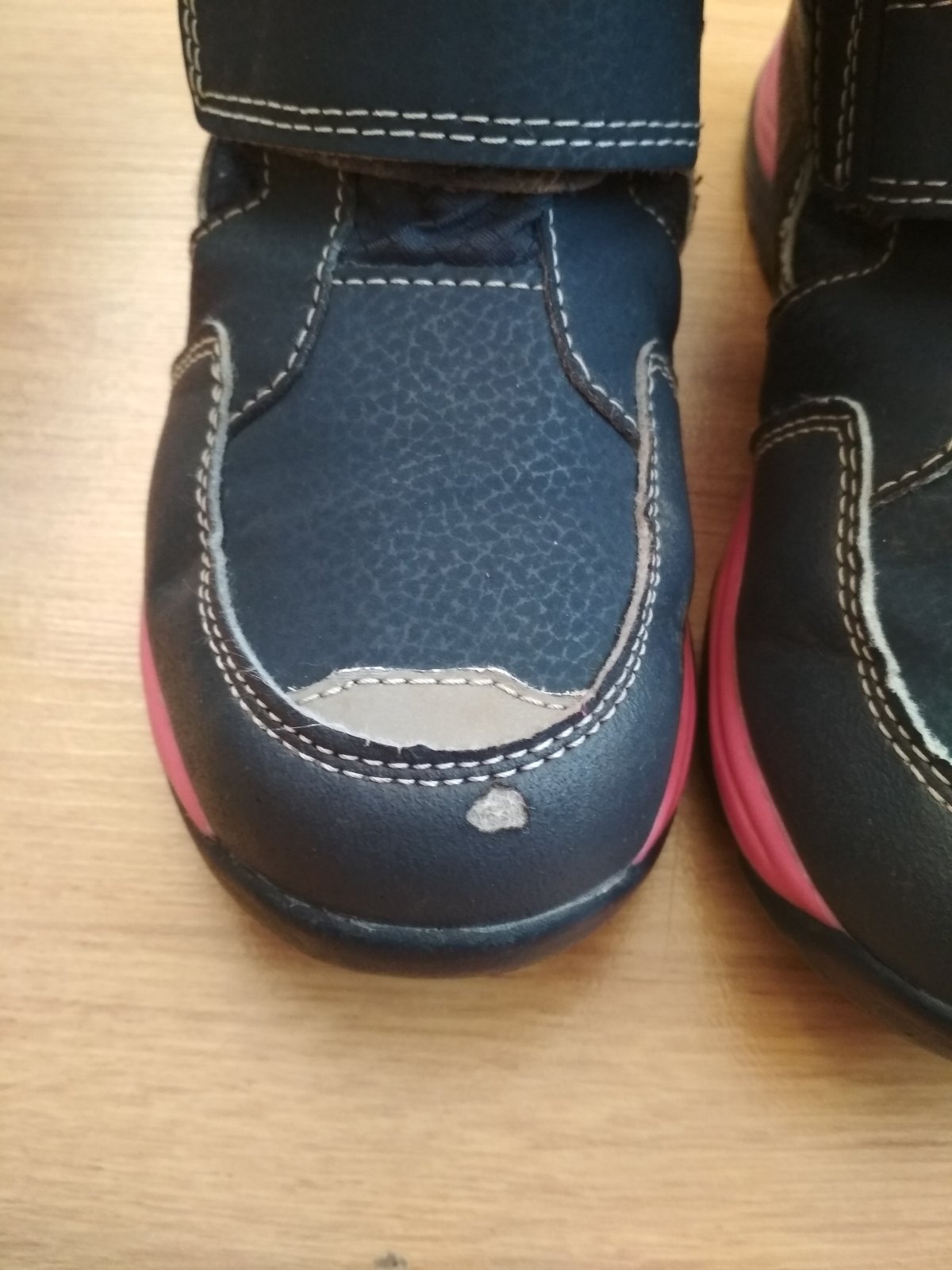 Celokožené zvnútra kožušinové topánky. Kupované nové minulý rok, nosene jednu zimu na striedačku s inými. Špičky oškrete a miestami popukana koža. Napriek tomu este zahreju a poslužia.
