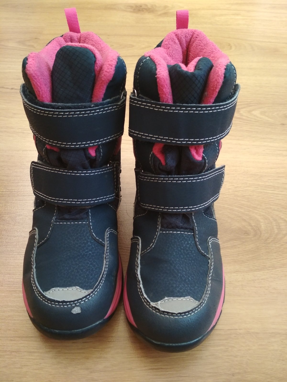 Zimné topánky, snehule, používané jednu sezónu. Veľká spokojnosť, nepremokavé. Chyby odfotené. Malý škrabanec na špičke a prasknuté reflexky na zadnej strane, zohľadnené v cene. Predajná cena 36€.
