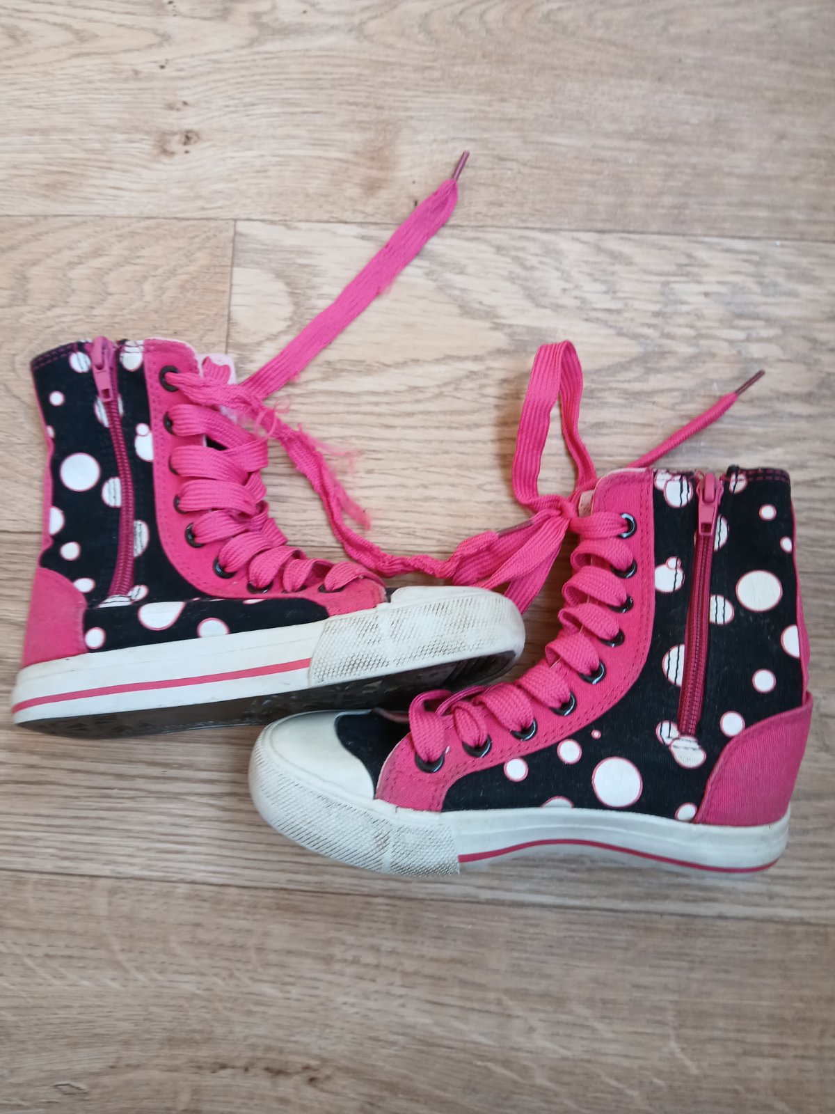 Tenisky boli nosene len velmi malo, su bez poskodeni, bezne znamky nosenia. Snurky mozno bude treba vymenit, lebo sa zacali skoro strapkat. Vnutorna dlzka 18cm.