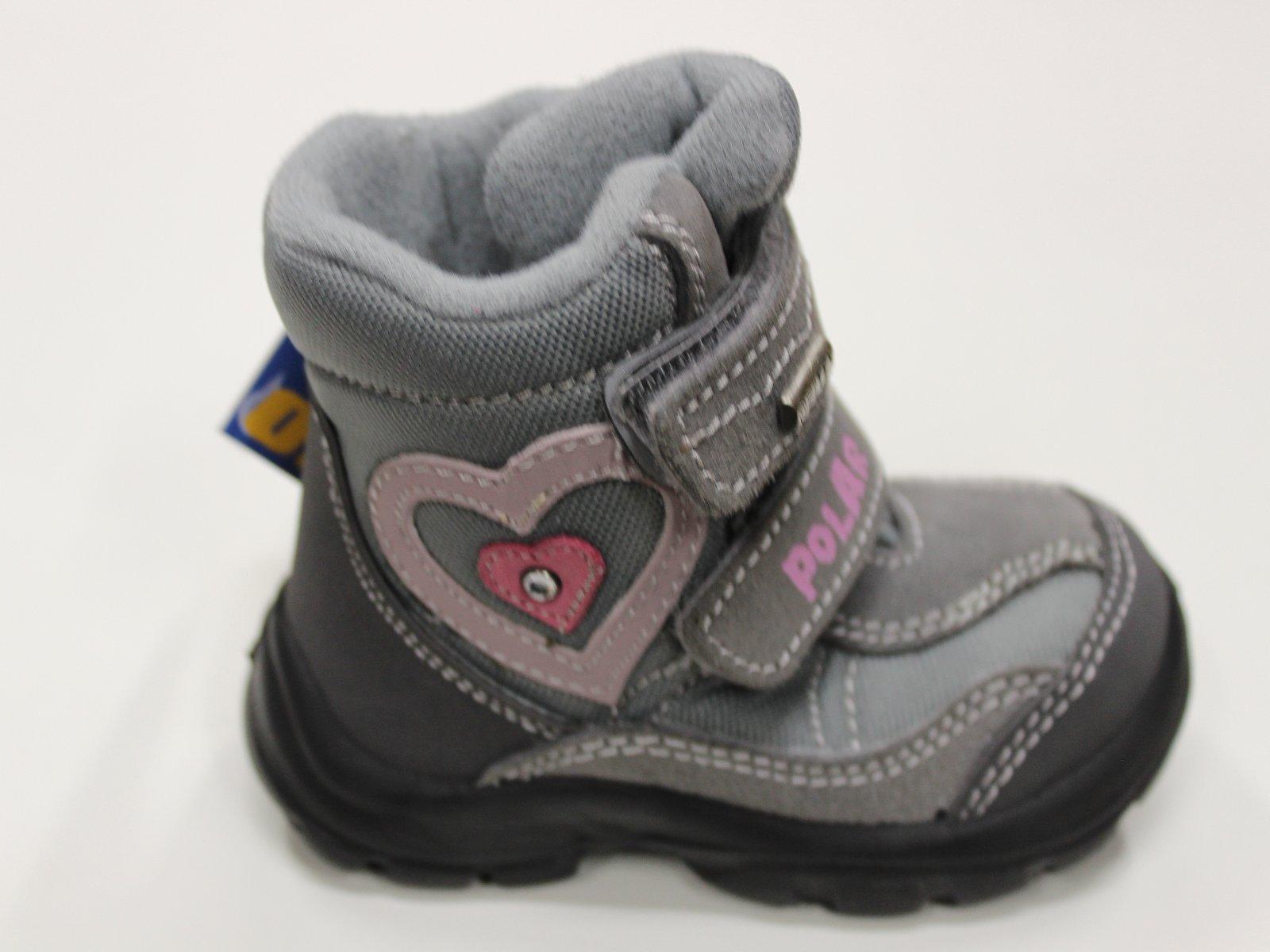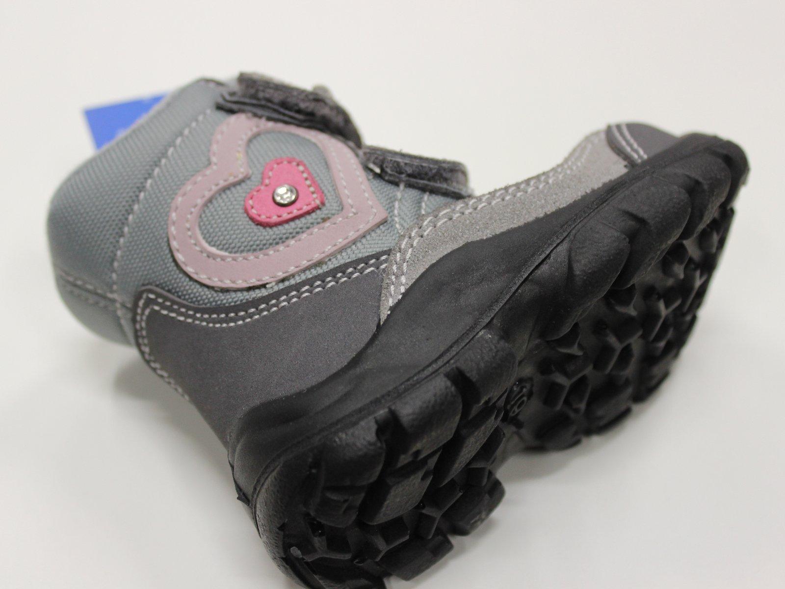 Dievčenské topánky sú zvnútra vyteplené hrubým flisom, zapínajú sa na suchý zips . Topánky sú kožené a majú nepremokavú membránu.