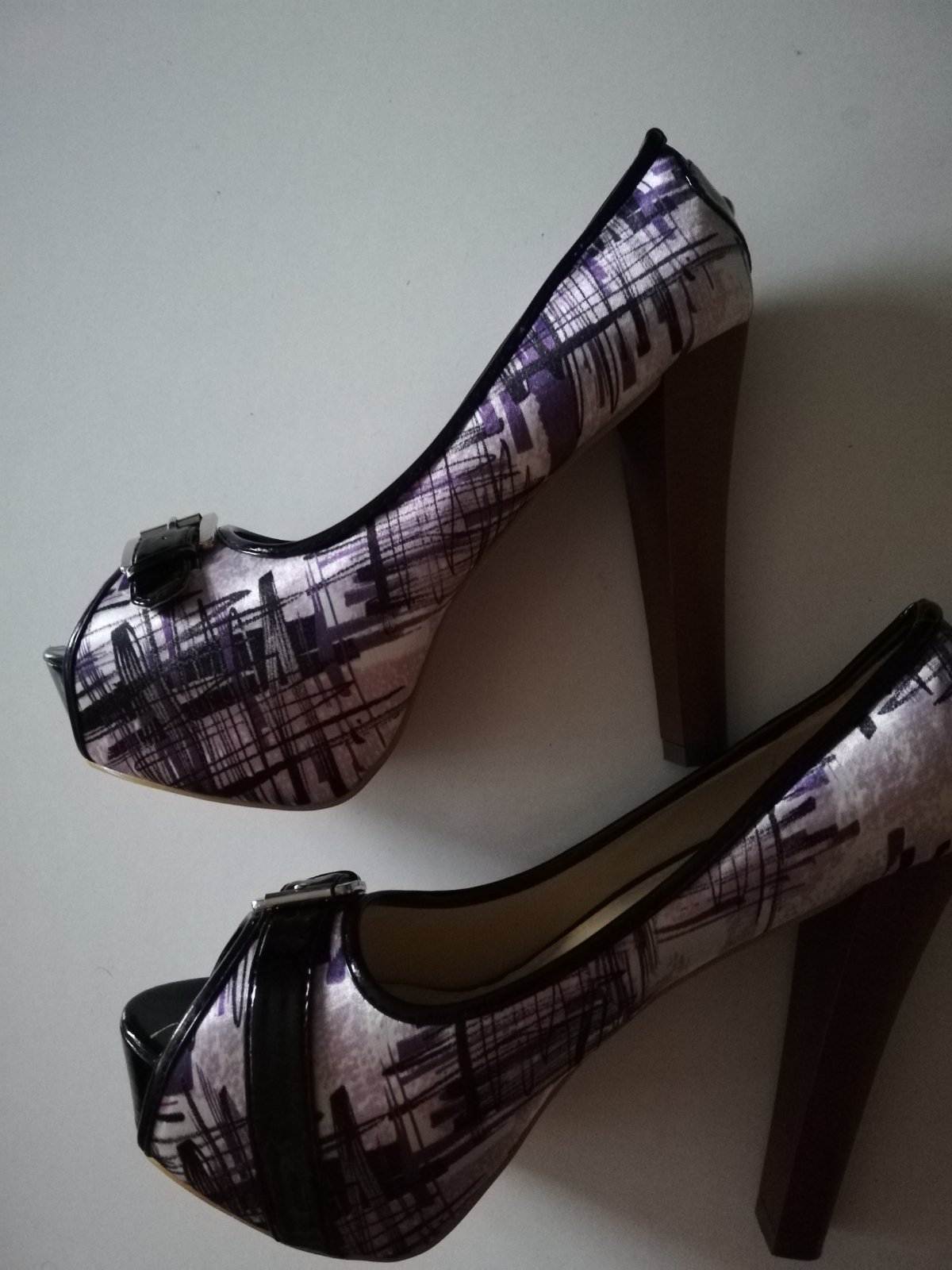 Fialovo čierne lodičky, veľmi vysoké, nové, ani raz neobuté.