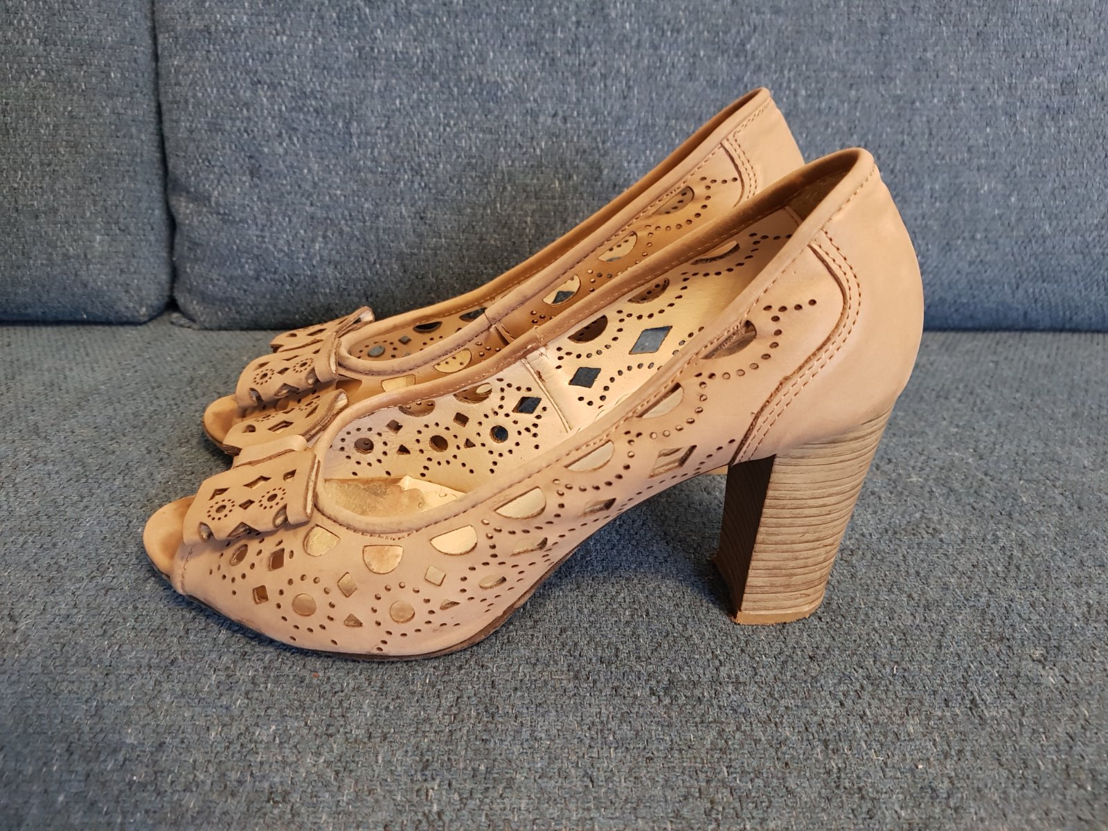 Dobrý nosený stav, na donosenie. Výška opätku 8,5 cm.
