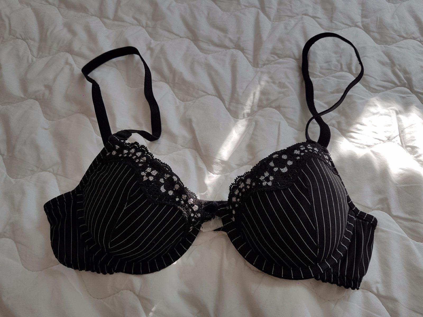 Podprsenka s pásikmi a čipkou vo výstrihu