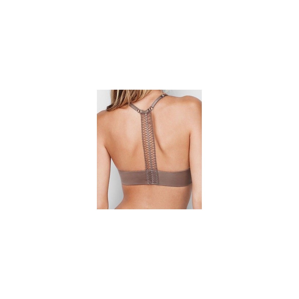 Luxusná podprsenka so zapínaním vpredu, značka Victoria´s Secret, dovoz USA, model: Satin Strappy Front Closure Plunge Push Up Bra 367114, farba Dark Iron 2GG (dymová šedo-hnedá), veľkosť 34D=75D.
