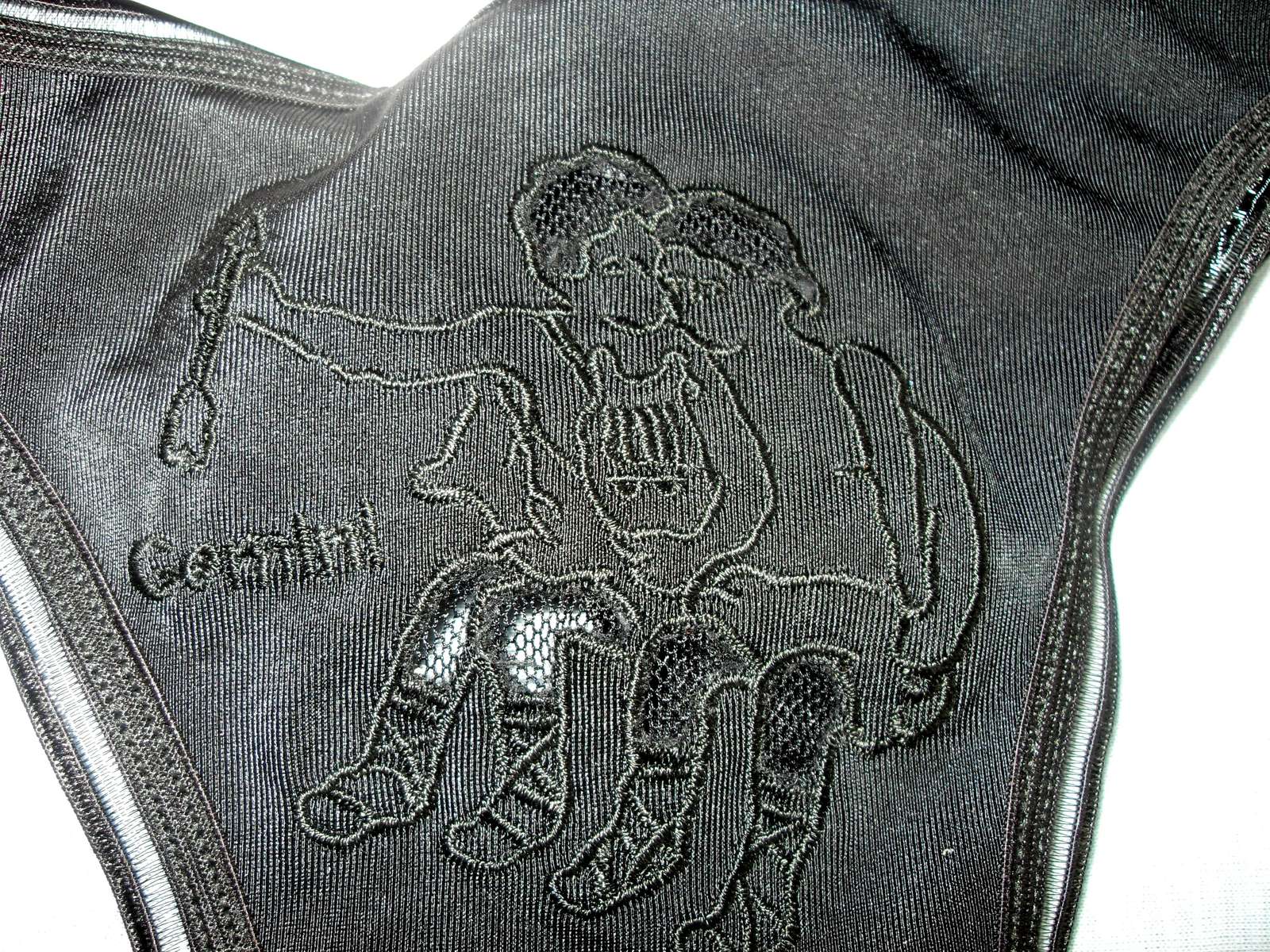 Predám nepoužívané čierne tango nohavičky so znamením Gemini (Blíženci). Veľ. S_M.
