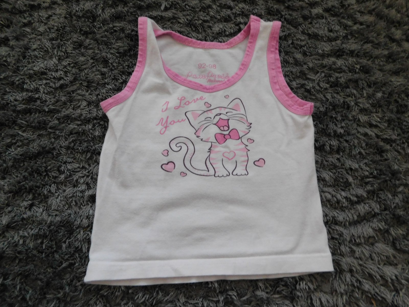 Veľmi dobrý stav! Dievčenské elastické tielko bielo-žlté. Veľkosť: cca 92. ROZMERY: dĺžka (vzadu):34,5cm,pod pazuchami meraná šírka (meraná len vzadu):22,5cm,od pazuchy dĺžka dole:21cm. (1570)