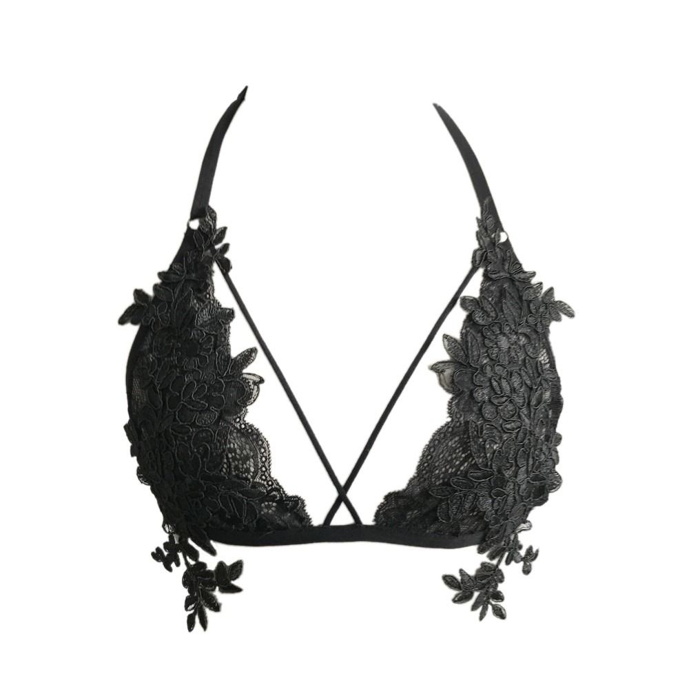ozdobna cierna cipkova podprsenka, velkost UNI, sedi na obvod 70-80 kosiky B