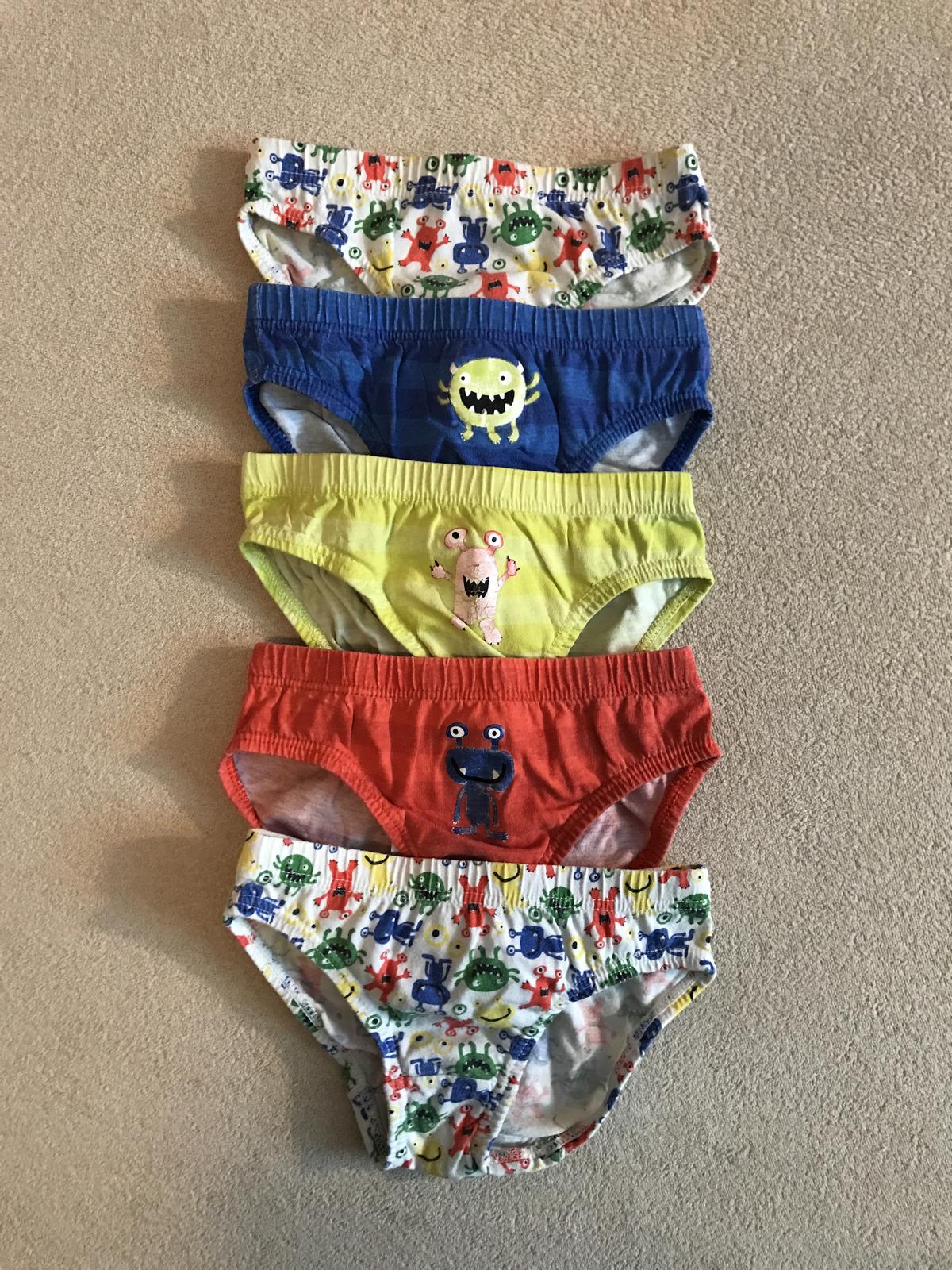 Nosené slipy, 5 kusov, na 3 nažehlené obrázky, na žltých viac ošúchané. Veľkosť 3-4 roky. Cena spolu 2,50 + poštovné