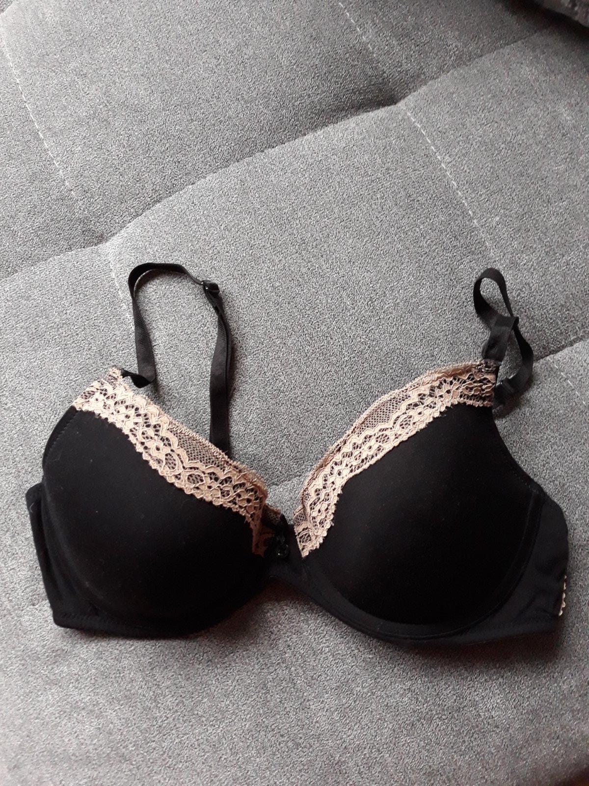 Predám mierne vystuženú čiernu podprsenku s béžovou krajkou vo výbornom stave, veľkosť 75B, cena 2 eurá plus poštovné.