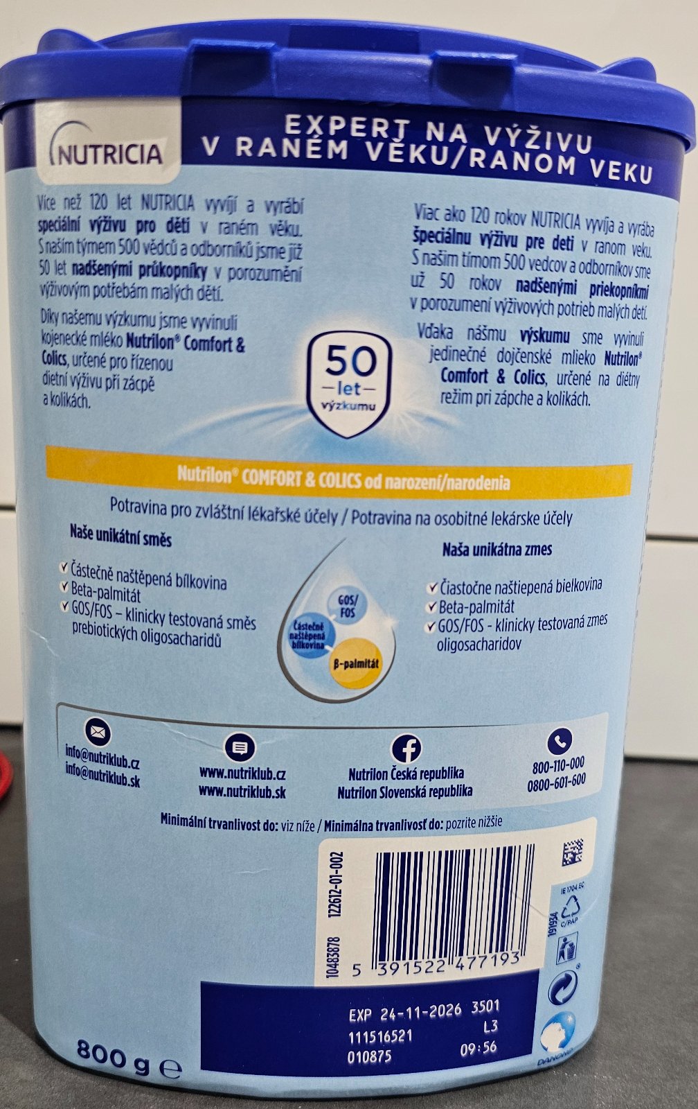 Predám Nutrilon Comfort & Colics 800g, špeciálnu mliečnu výživu v prášku, ktorý je určený na diétny režim pri zápche a/alebo kolikách pre dojčatá od narodenia.