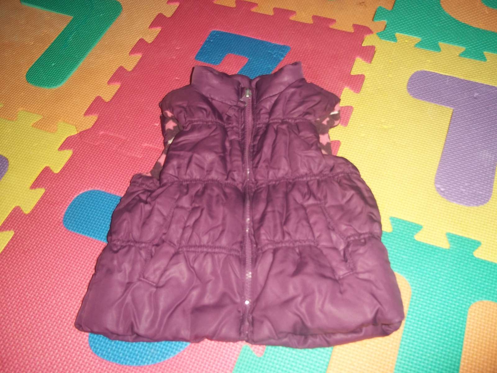 Zateplena vesta,velkost 18-23 mesiacov,velmi dobry stav.Dĺžka od krku 35 cm a šírka pod pazuskami 26 cm