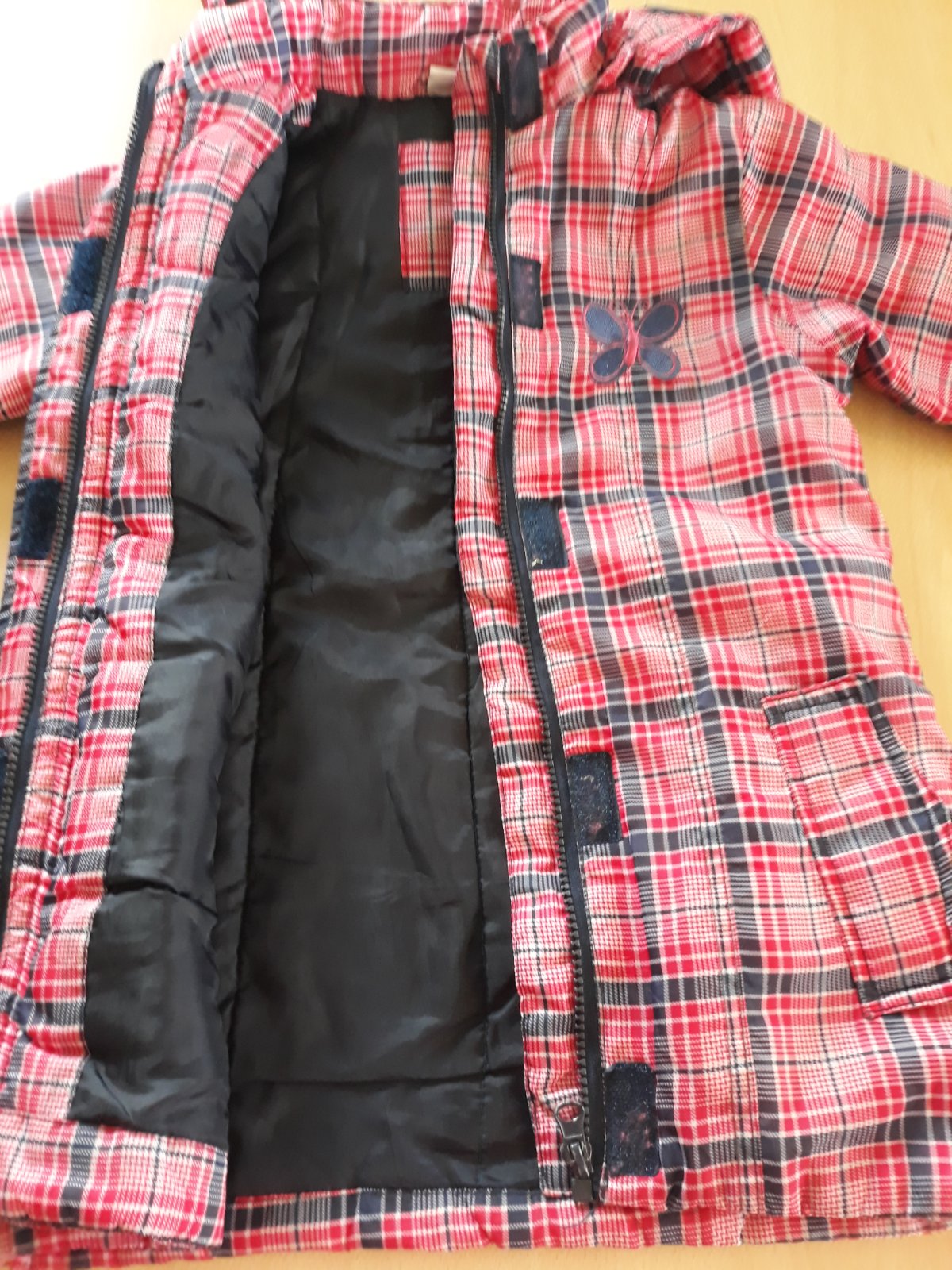 Pekna prechodna bunda piše velkost 104 ale povedala by som 104-110 Nepoškodena super stav na behanie alebo aj do školky.rozmery dlžka 56cm rukav od kapucne46cm.
