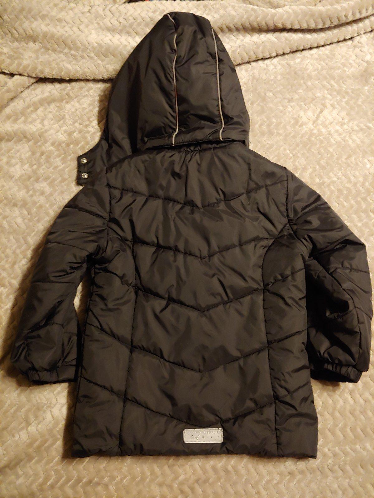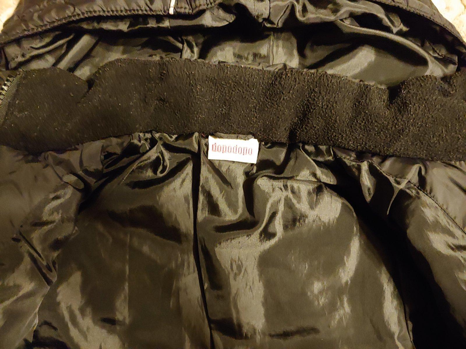 Pekny noseny stav, bez flakov a dier.Je vhodnejsia na miernejsiu zimu.Odopinatelna kapucna.Dlzka 48cm, sirka 40cm,rukav od krku 46cm, od pazuch 27cm.