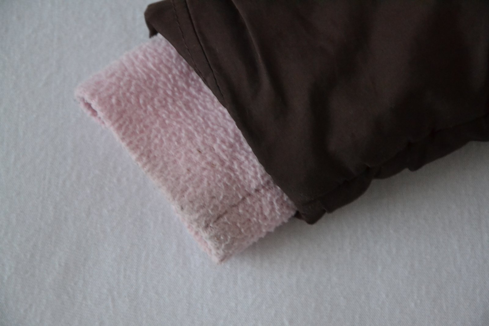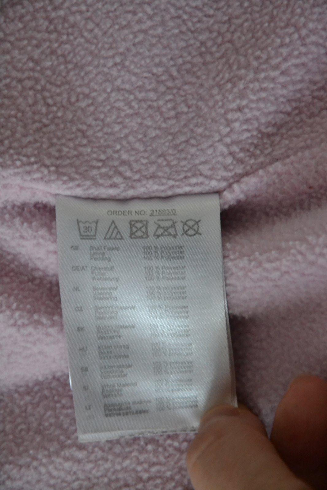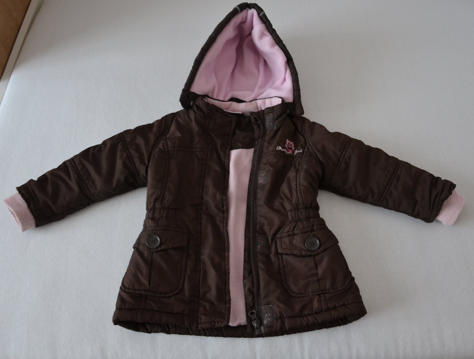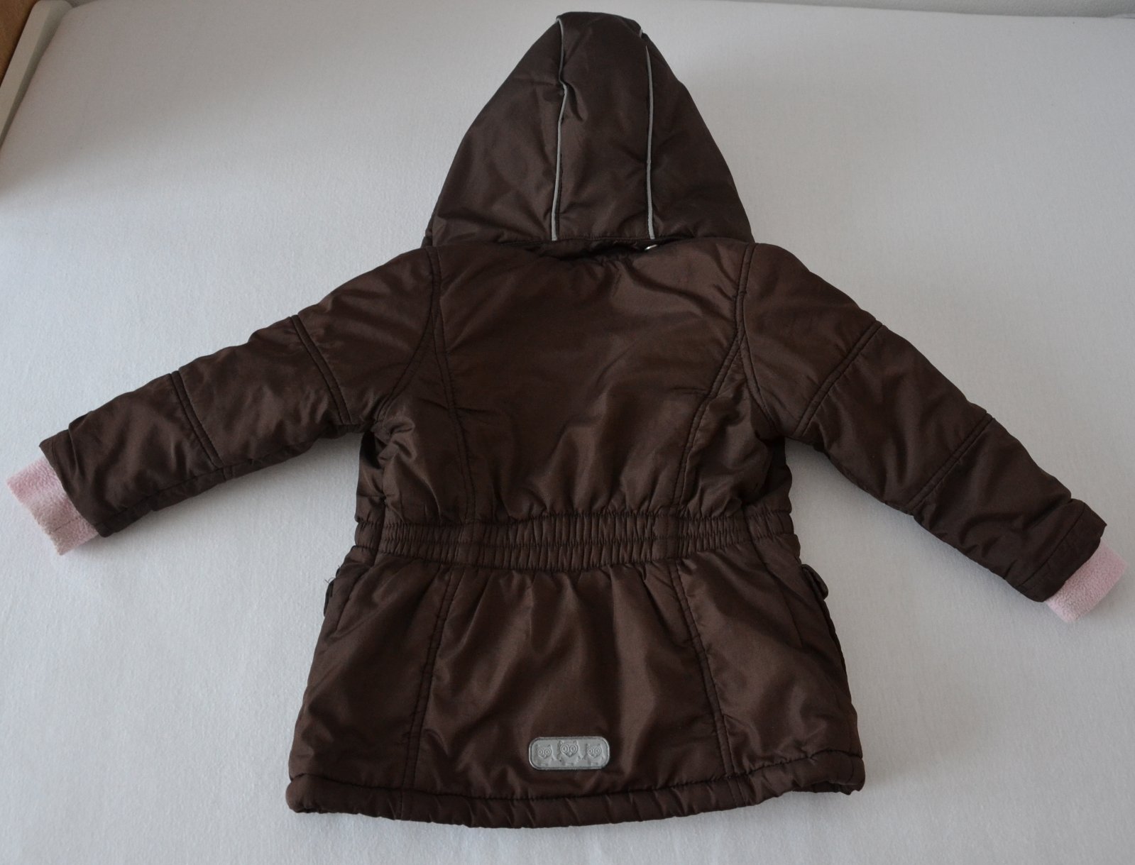 Nosená, na rukávoch je na ružovej časti vidno že sa to tam viackrát zašpinilo pri ručičkách, nešlo to lepšie vyčistiť. Kapucňa je odopínateľná na cvoky, držia slabšie, po silnejšom potiahnutí sa odopínajú, ale my sme ju nosili normálne von. Bunda je na zips, vyteplená zvnútra fleecom. Je na chladnejšiu jeseň.