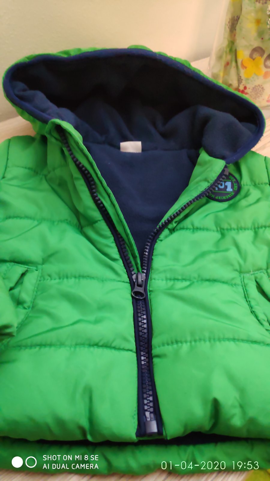 Mam na predaj vetrovku na zimu, podsitu flisom, s kapucňou, veľmi dobre sa nosila, príjemný materiál, veľkosť 12-18 mesiacov, dĺžka 33cm, šírka 33cm, dĺžka rukava od zošitia 30cm, osobný odber Prešov alebo pošlem poštou 😉