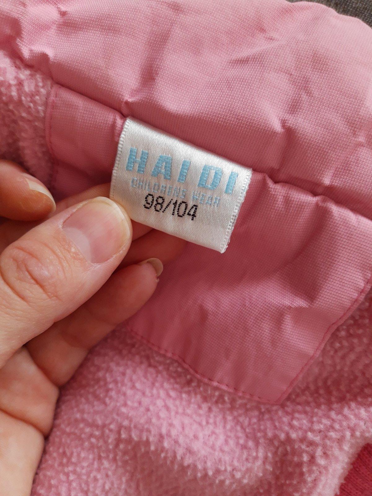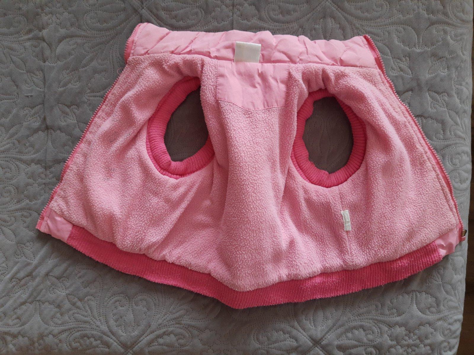 Zateplena vesticka znacky Lupilu, velkost 98. Ruzova, s ciernymi kruzkami. Vhodna pred prechodom na zimne bundy.