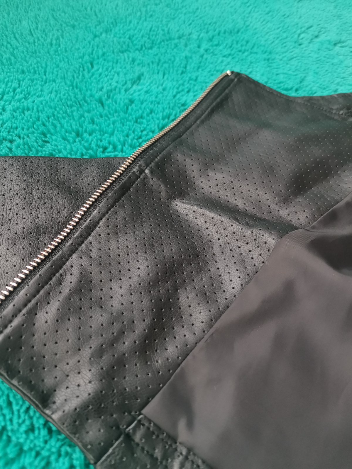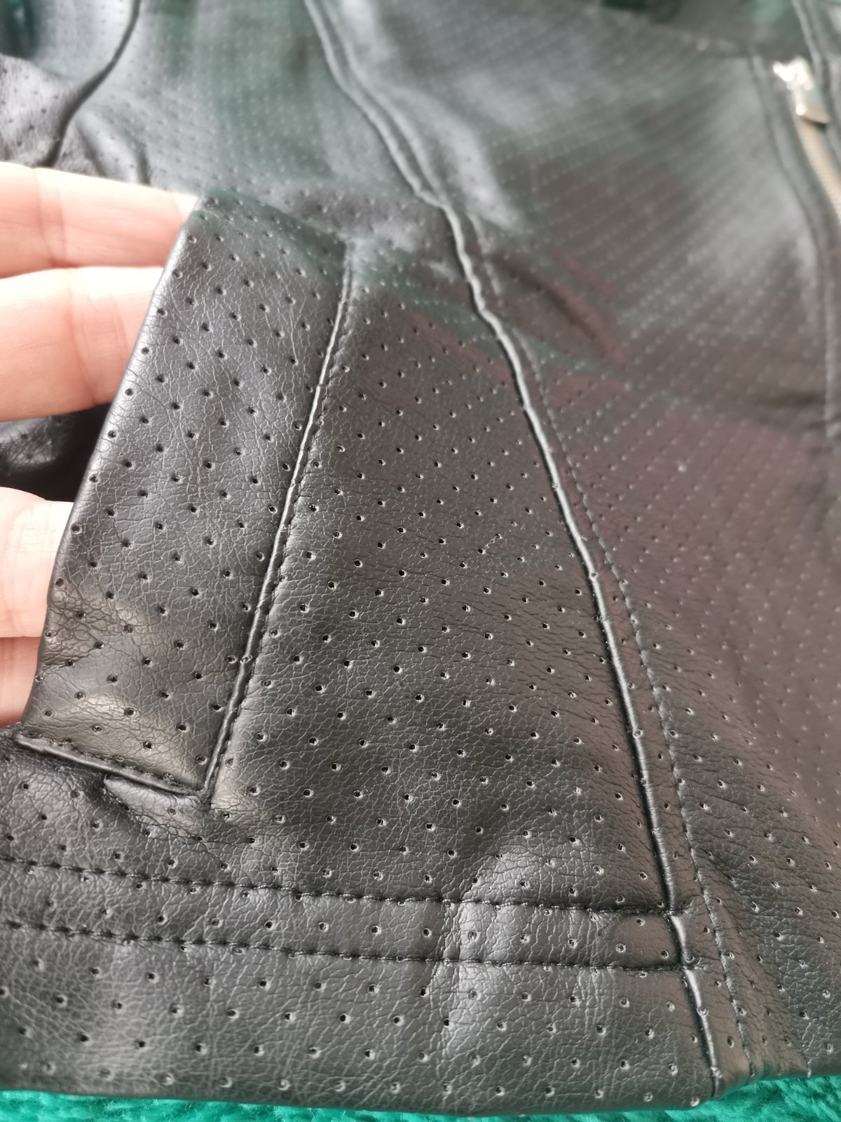 Nádherná biker bunda, dierkovana koženka, bez poškodenia, ako nová,je len trochu pokrcena lebo bola poskladana ale ona sa vyrovná na vešiak.. (nie je zalomená) PC 49