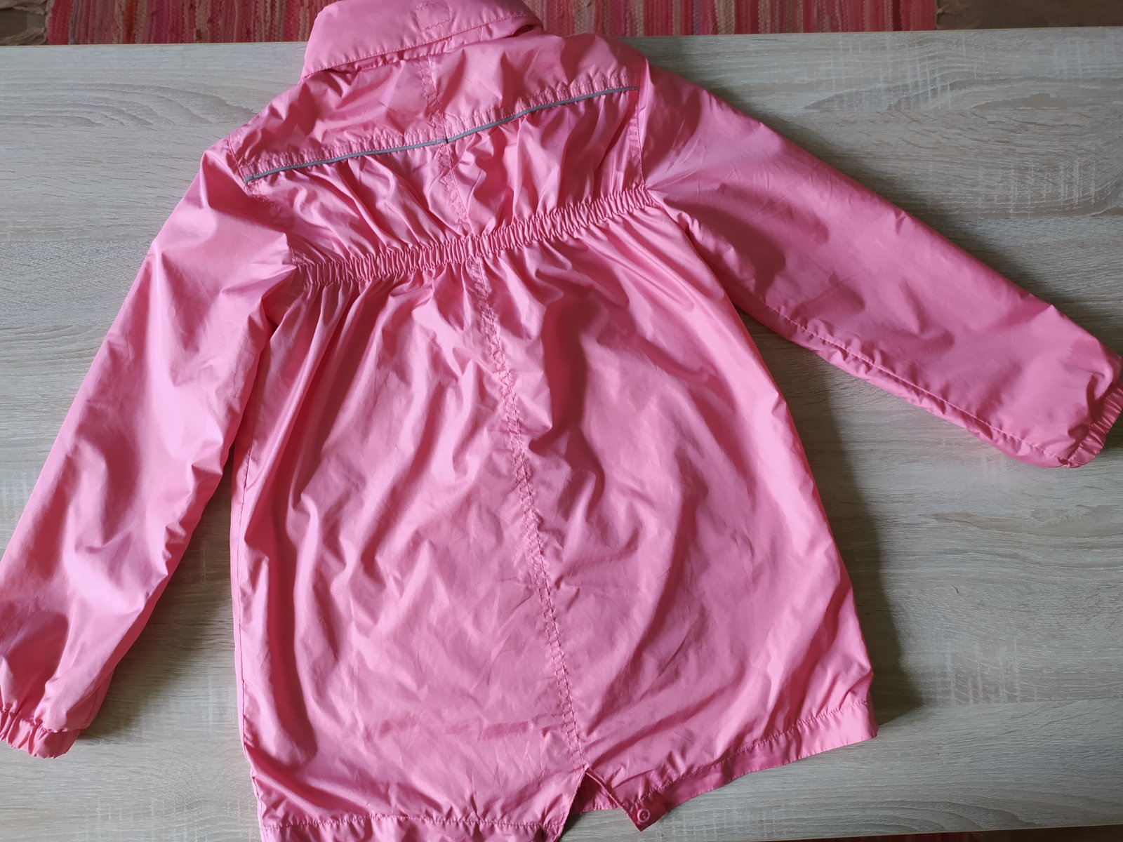 Tenká podšitá, kapucka v golieri, mierne šušťavý materiál, rukávy ukončené do gumky proti vetru, vynikajúci stav.