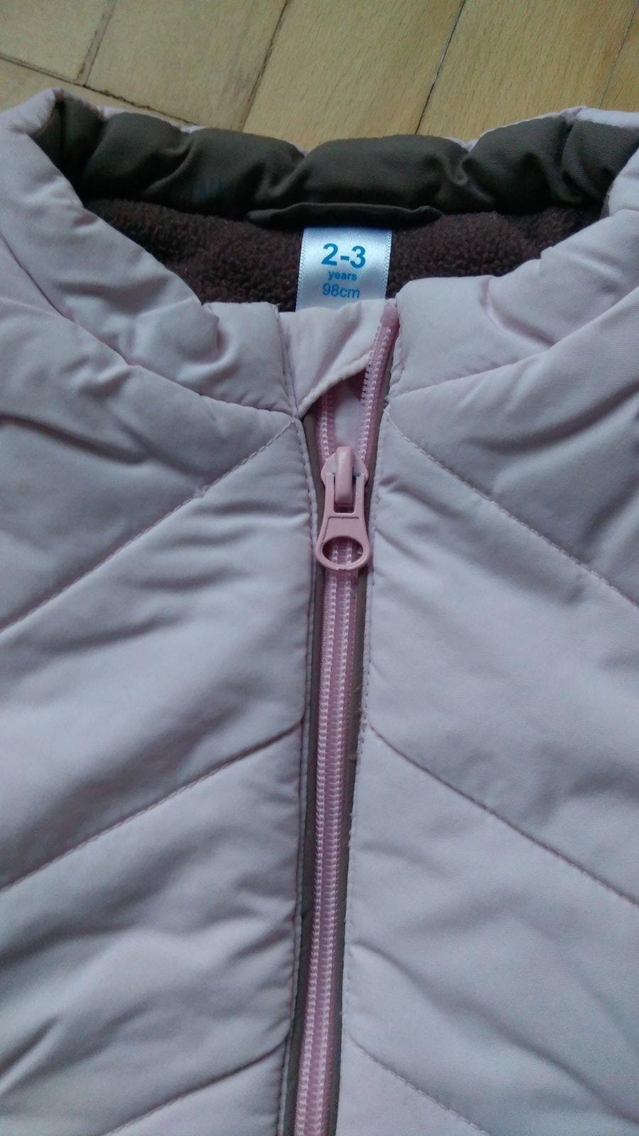 Krásna svetloružová vestička (čiapku priložím), málo nosená. Veľkosť 98, 2-3 roky.