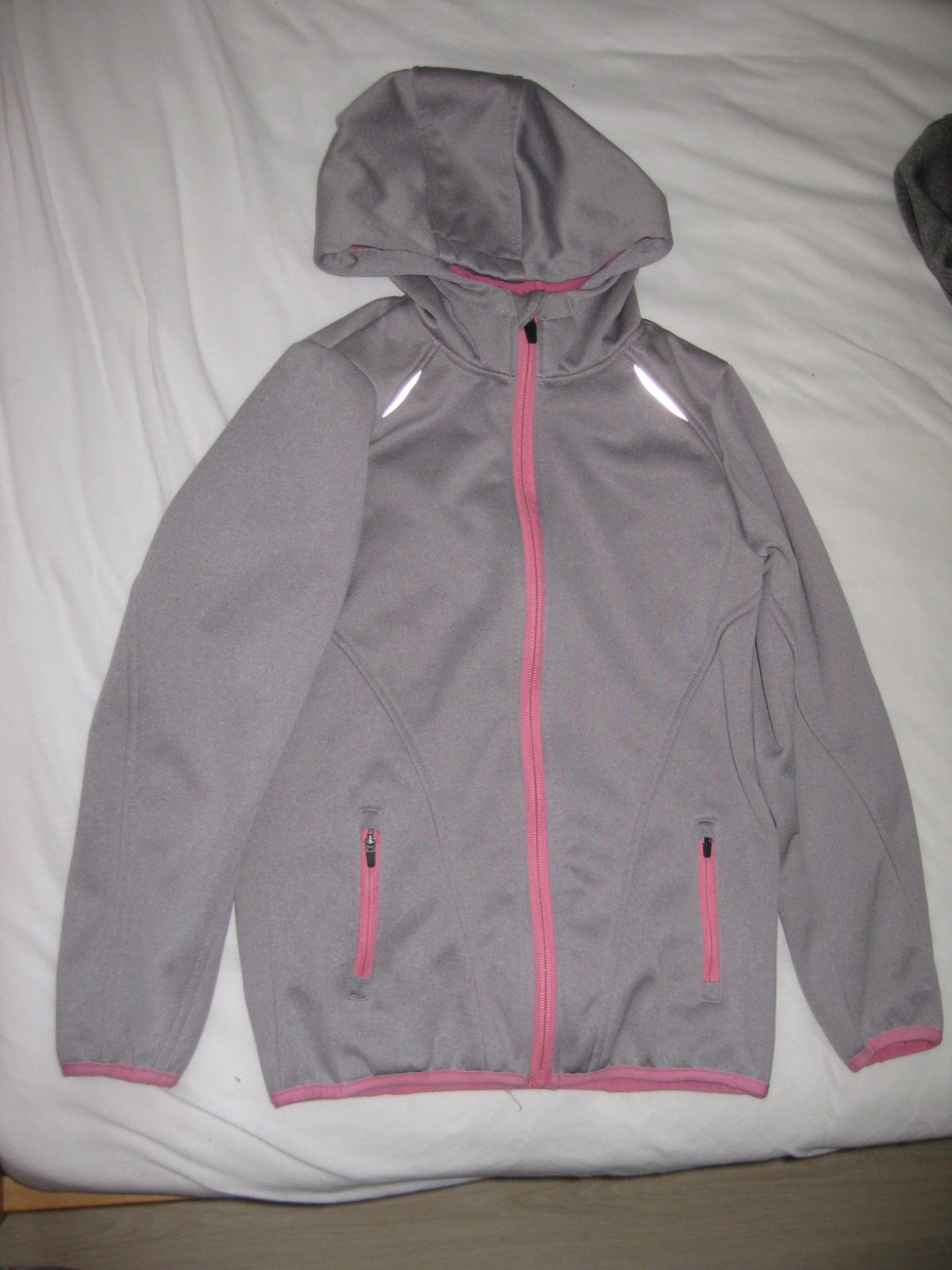 Už len jedna svetlo sivá softshellová bunda, kúpená v Lidli.