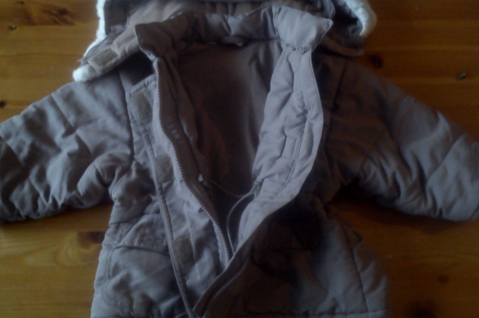 Predám teplú bundičku a odopínateľnými rukavicami, zapínanie na zips + cvoky, 2 vrecká, teplá kapucňa. Na ľavom rukáve chýba iba krytka cvoku, je funkčný.