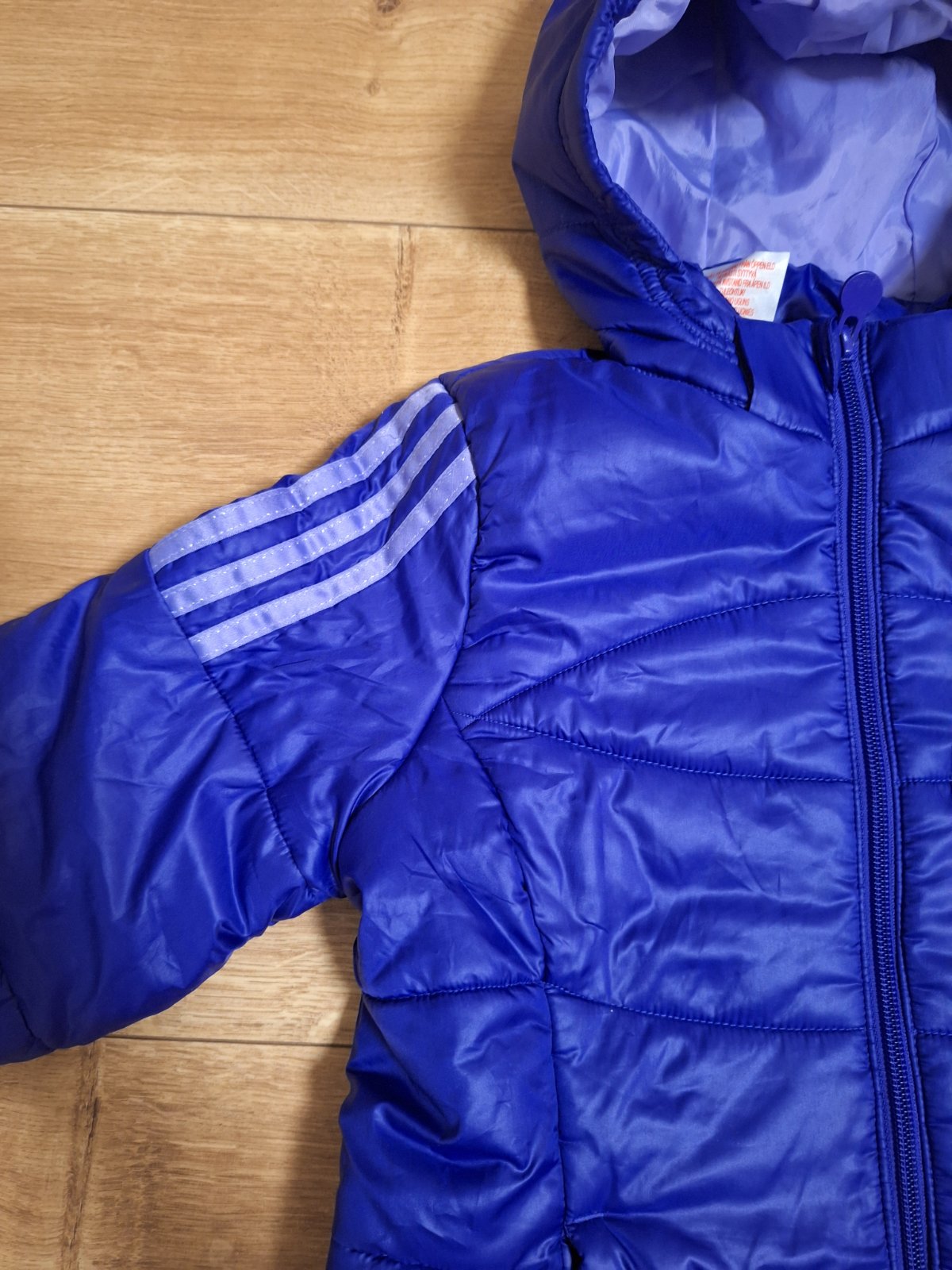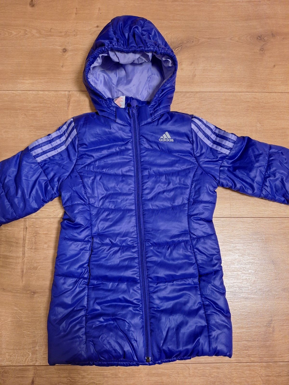 V super stave, teplucka. Na rukavoch 3 pasy pretkavane striebornou nitou. Kapucna odnimatelna. Bez poškodení.