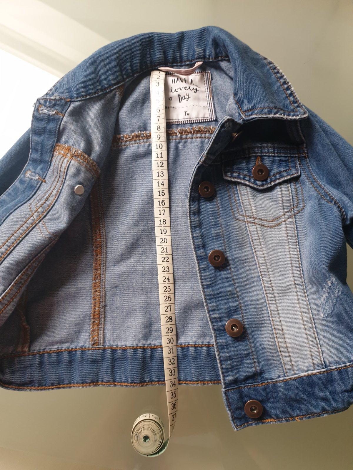 Predám riflovu bundu veľkosť 110-116 do pása dĺžka 36cm šírka 32cm od krku po rukáv 47cm