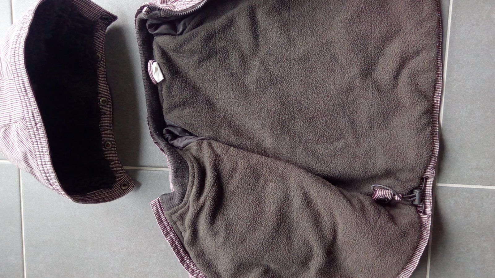 Predám krásnu teplú bundičku, podšitá flísom, vnútro odnímateľnej kapucky je podšité kožušinou. Farba - vnútro je tmavozelené, vrchná látka je pevnejšia, s jemnými zeleno-bordovými pásikmi a tmavozeleným štepovaním.