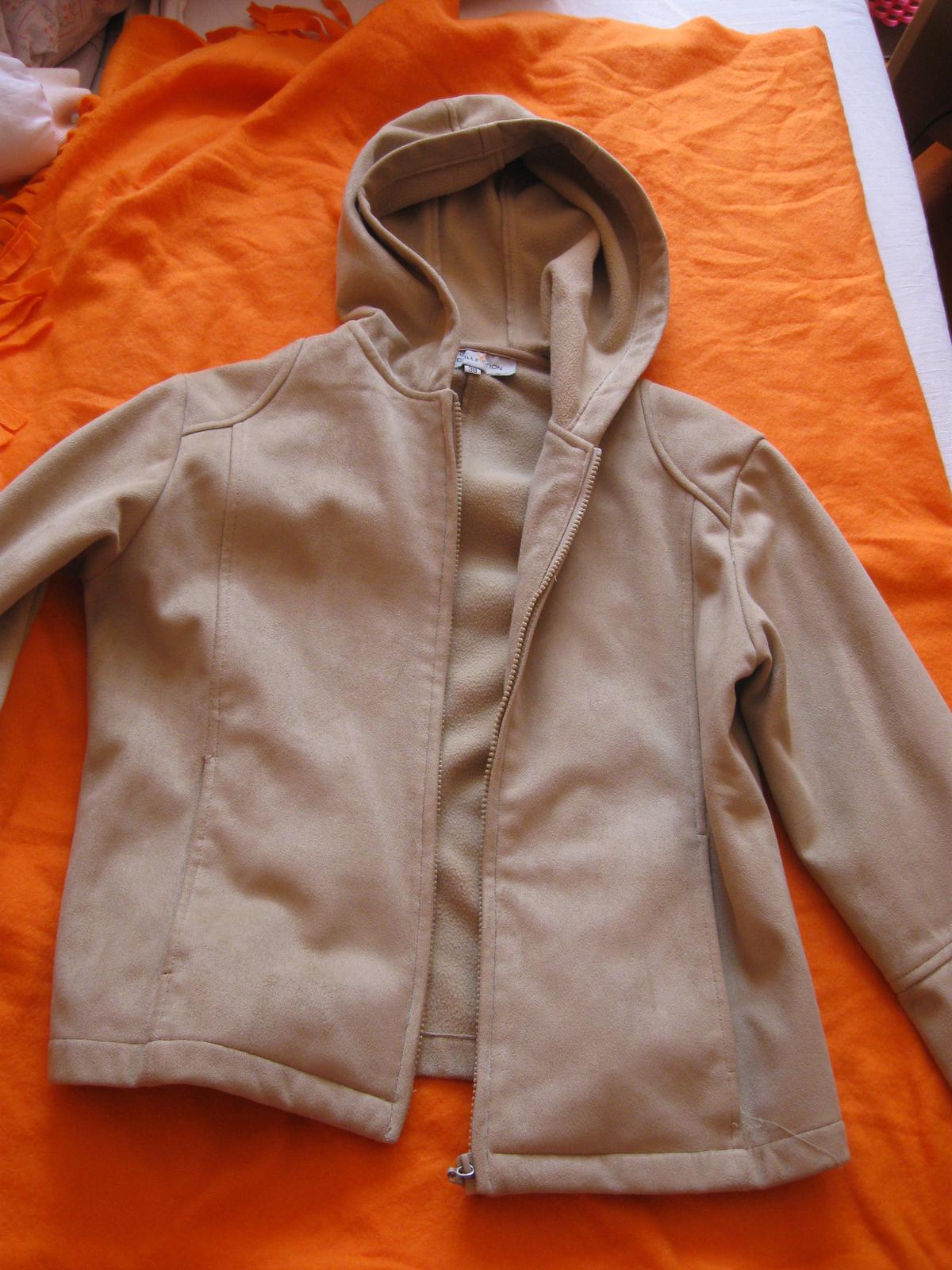 Jeden krát oblečený kabátik, jednovrstový, kapucňa sa dá dať dole