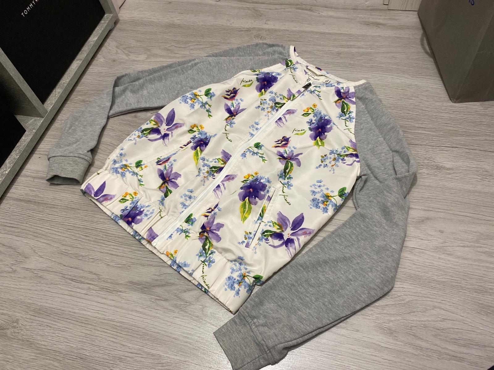 Krásna stylova kvetinkova klinove rukávy z teplakoviny ukoncene patentom pas ukončený gumickou bez kapucne na zips basketbalový strih
