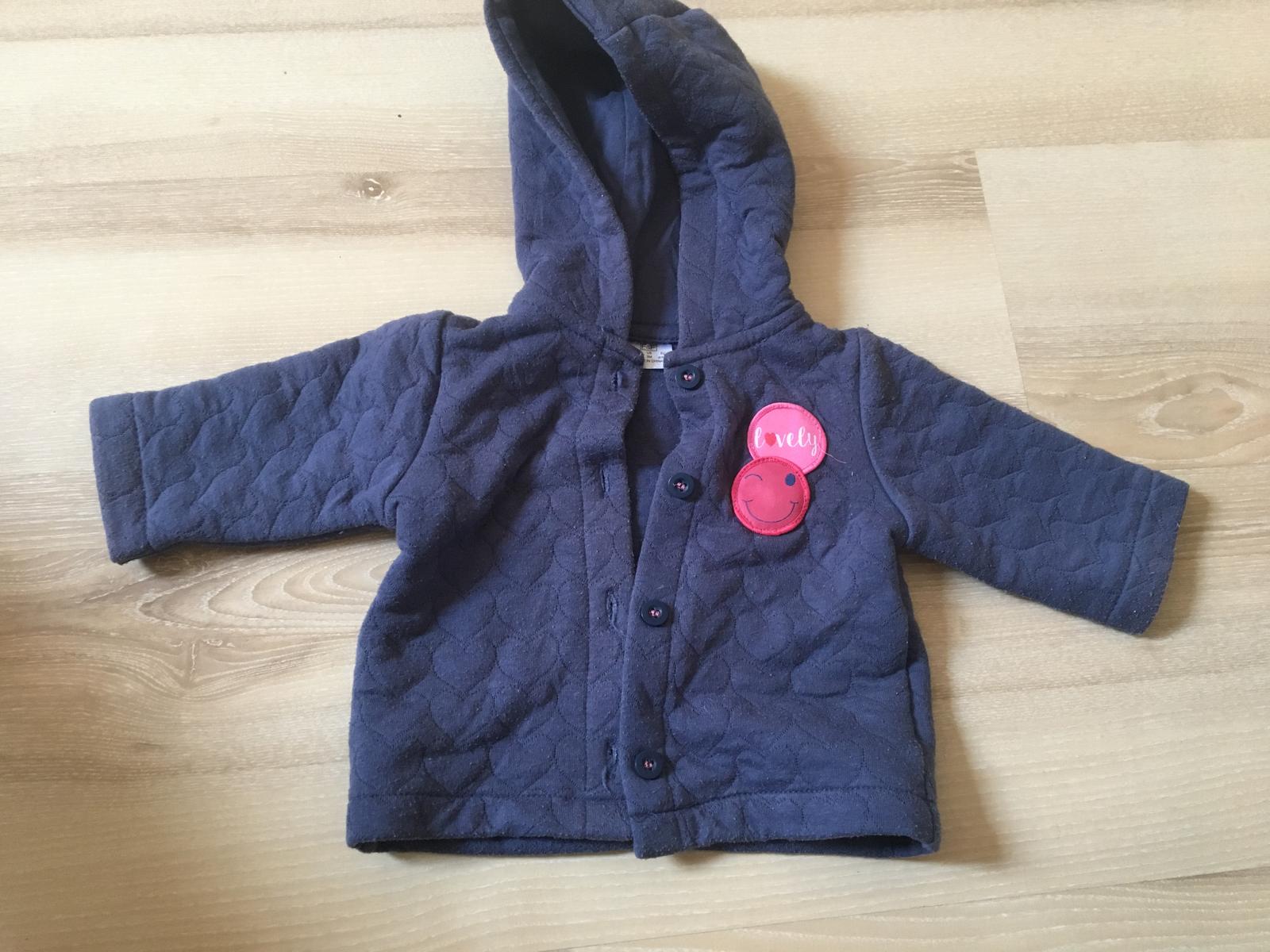 Tenký kabátik nosený,ale v dobrom stave.Na kabátiku su mini žmolky (viď druhá foto) ale nijak to nekazí na celkovom vzhľade kabátika.Pilše veľosť 62 no my sme nosili aj dlhšie.