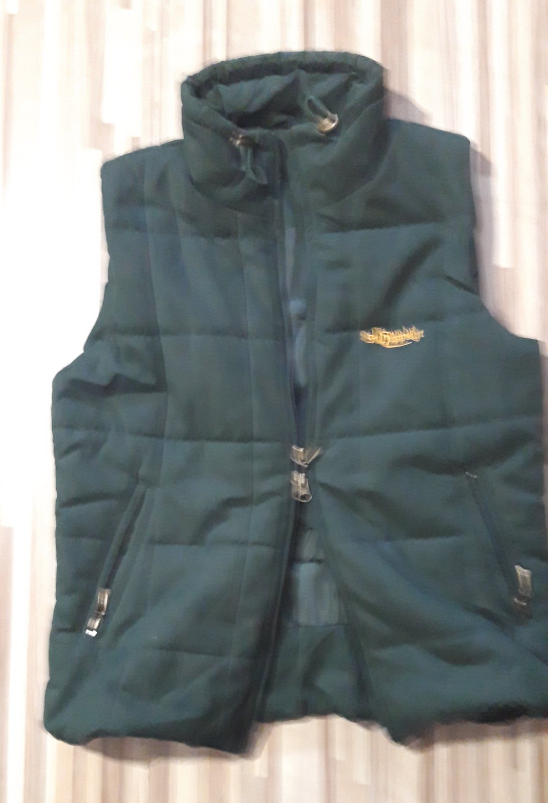 Ponúkam teplučku ,vesta je dlhá 61 cm od krku bez goliera ktorý je dlhý 8 cm má zibs zo spodu aj z vrchu,cez,je bez poškodenia hrudnik 57x2 ,vyborny stav