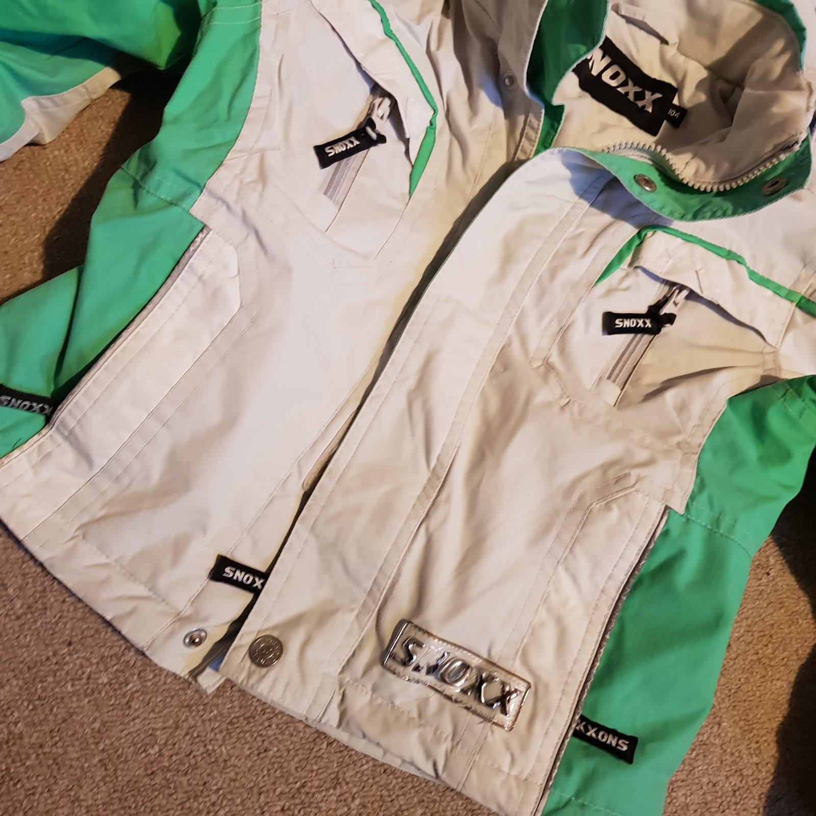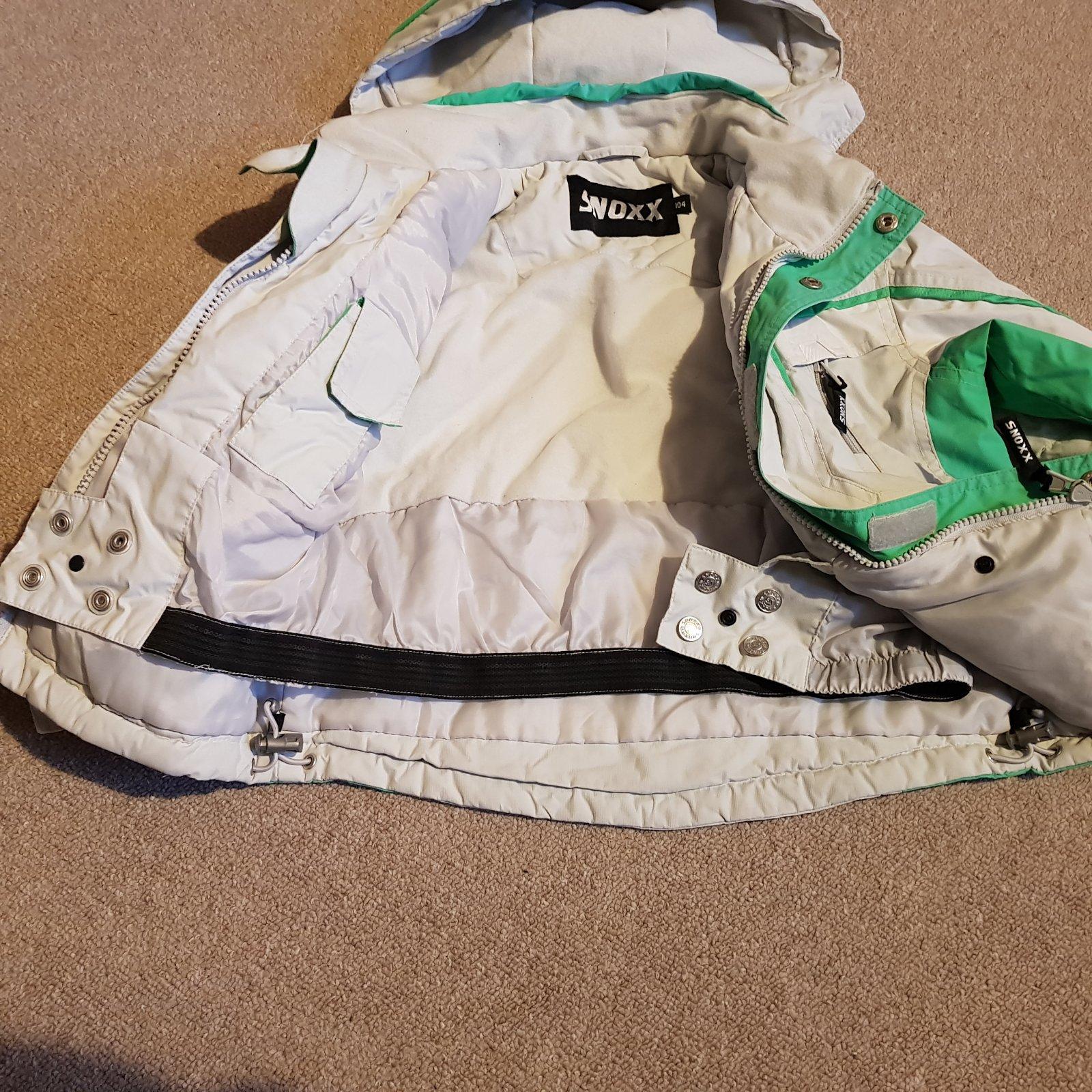 Kvalitna bunda na lyzovanie alebo sankovanie.Pekny nosený stav. Odporúčam.., praktická, ma vela vreciek.Pismenka strieborne v dolnej casti bundy trošku vysuchane, vid foto.