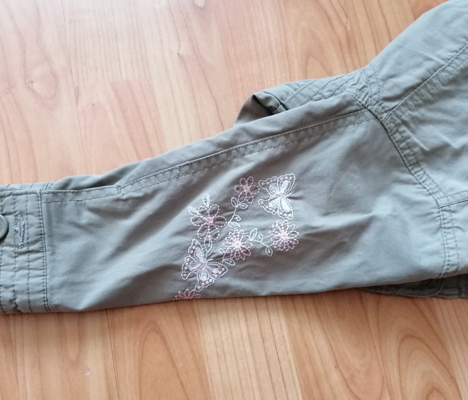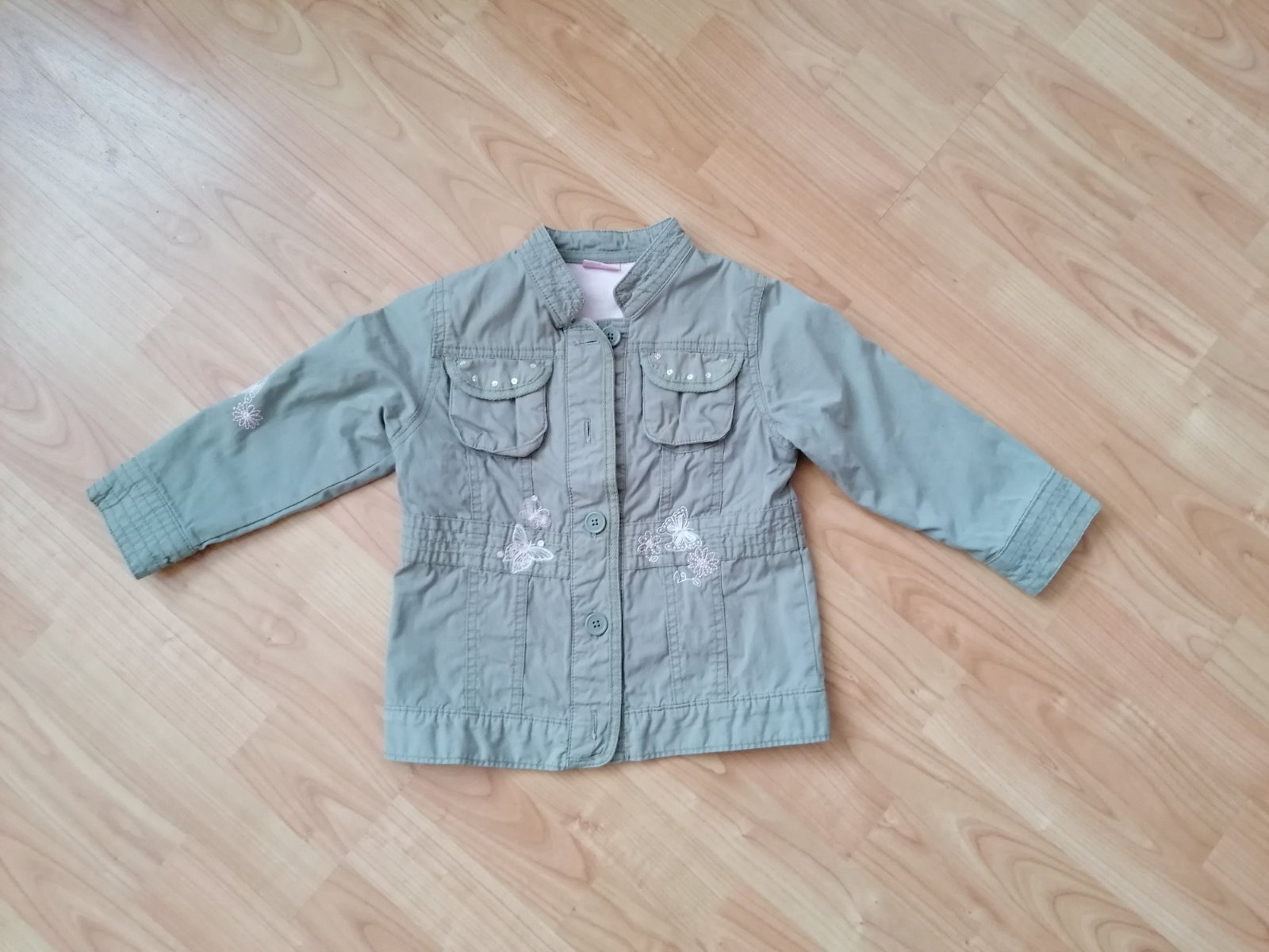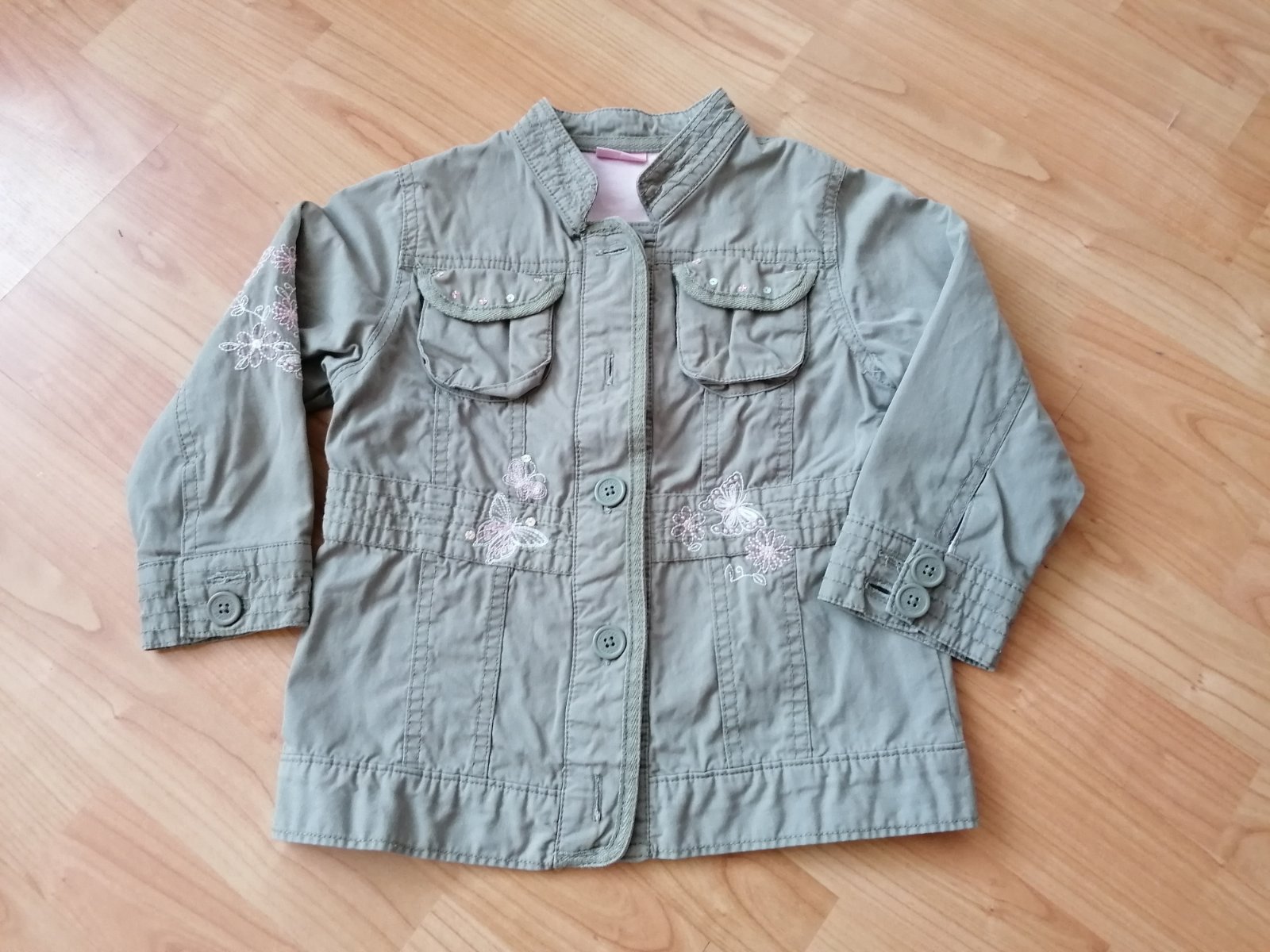 Dievčenská bunda na prechodné obdobie, nosená, stále v dobrom stave, zapínanie na gombíky, veľ. 110, zn. Cherokee. Dĺžka: 41 cm Šírka: 35 cm Dĺžka rukáva od krku: 45 cm Cena: 7 € + pošta