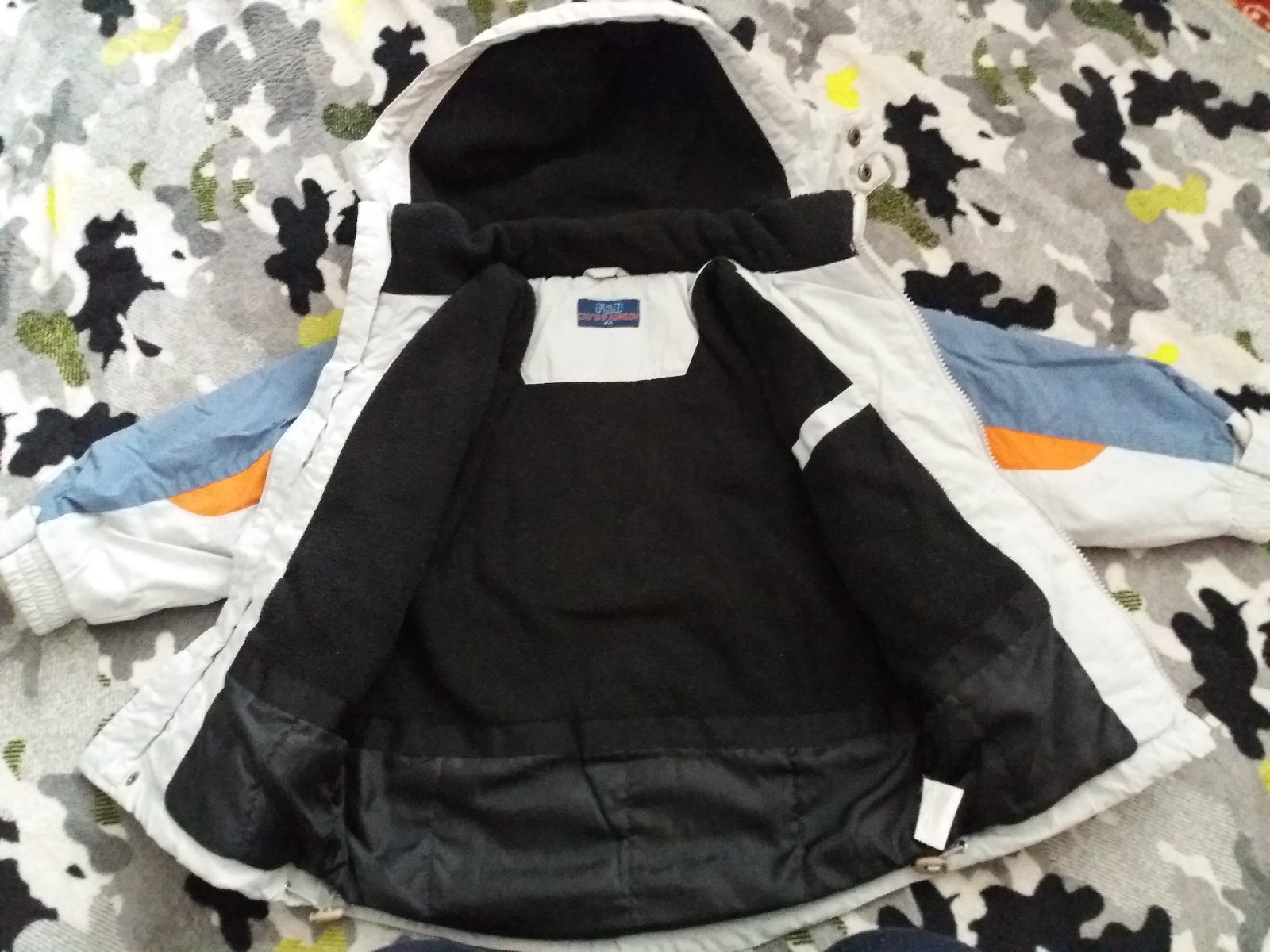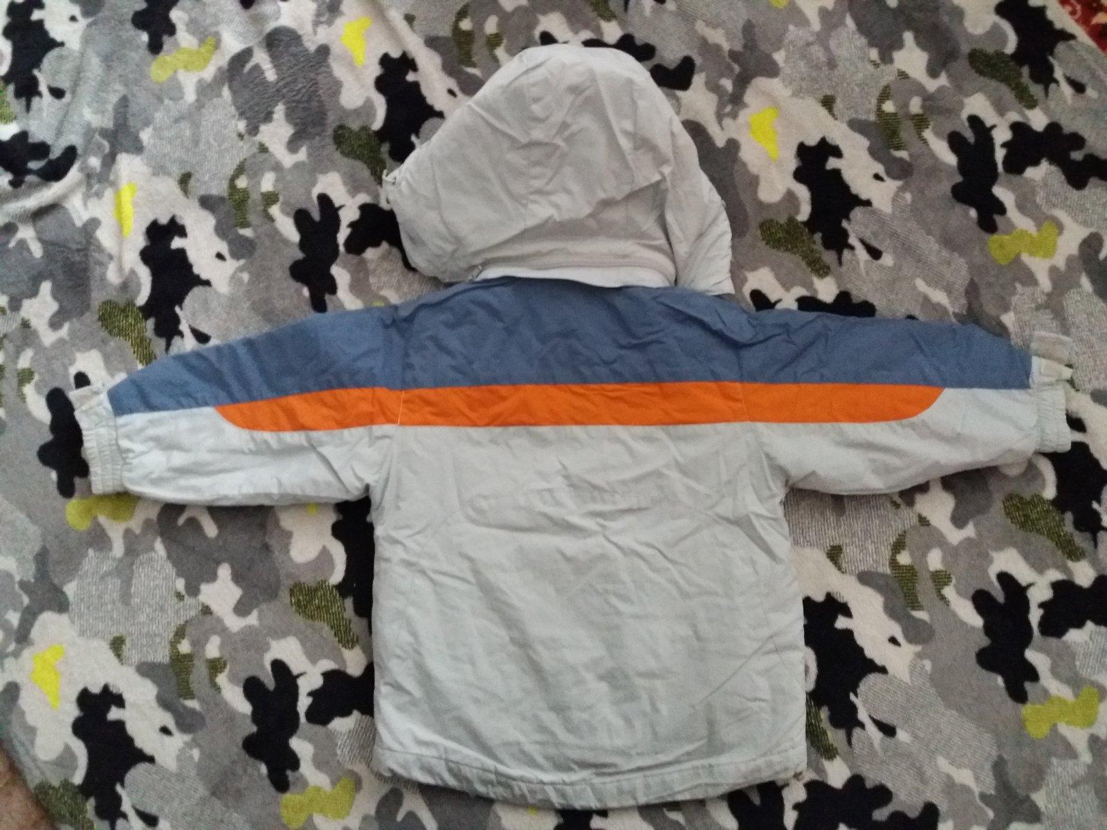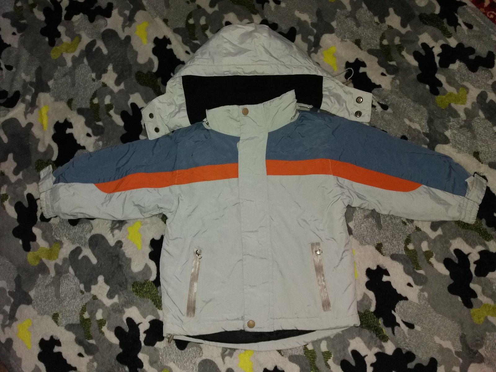 Zachovalá nosená vetrovka s kapucňou, vo vnútri flis.Dĺ.44cm, š.39cm, rukav + plece 43,5cm.