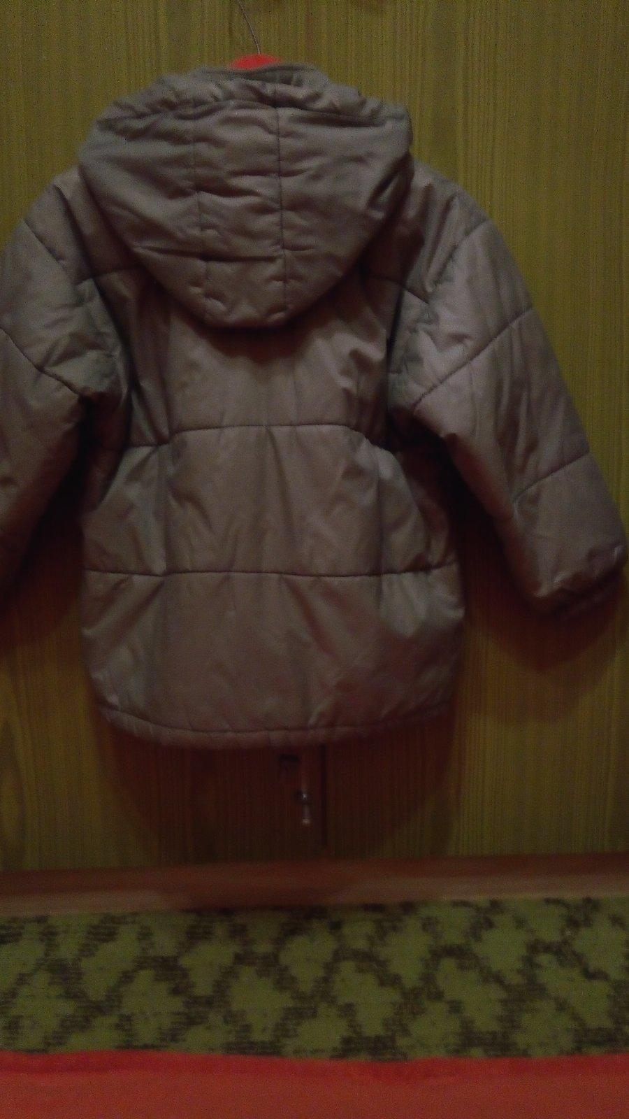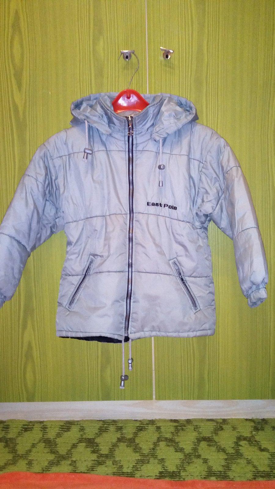 Zimná prešívaná bundička s odopínateľnou kapucňou, dole na sťahovanie šnúrkou, šikmé vrecká na zips. Zachovalá, bez poškodenia.