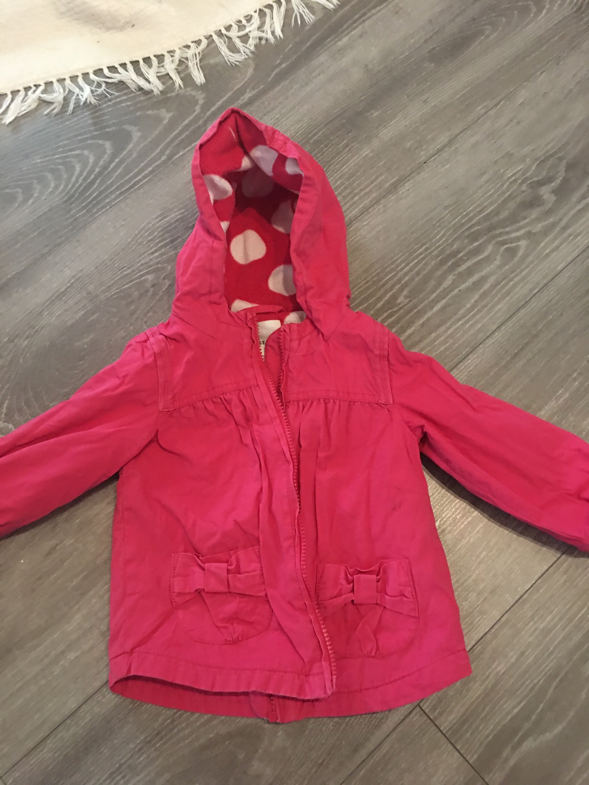 Jemna fialová farba. Bunda je skôr ako plášť, veľmi tenká. Píše veľkosť 80, ale je skor na 86