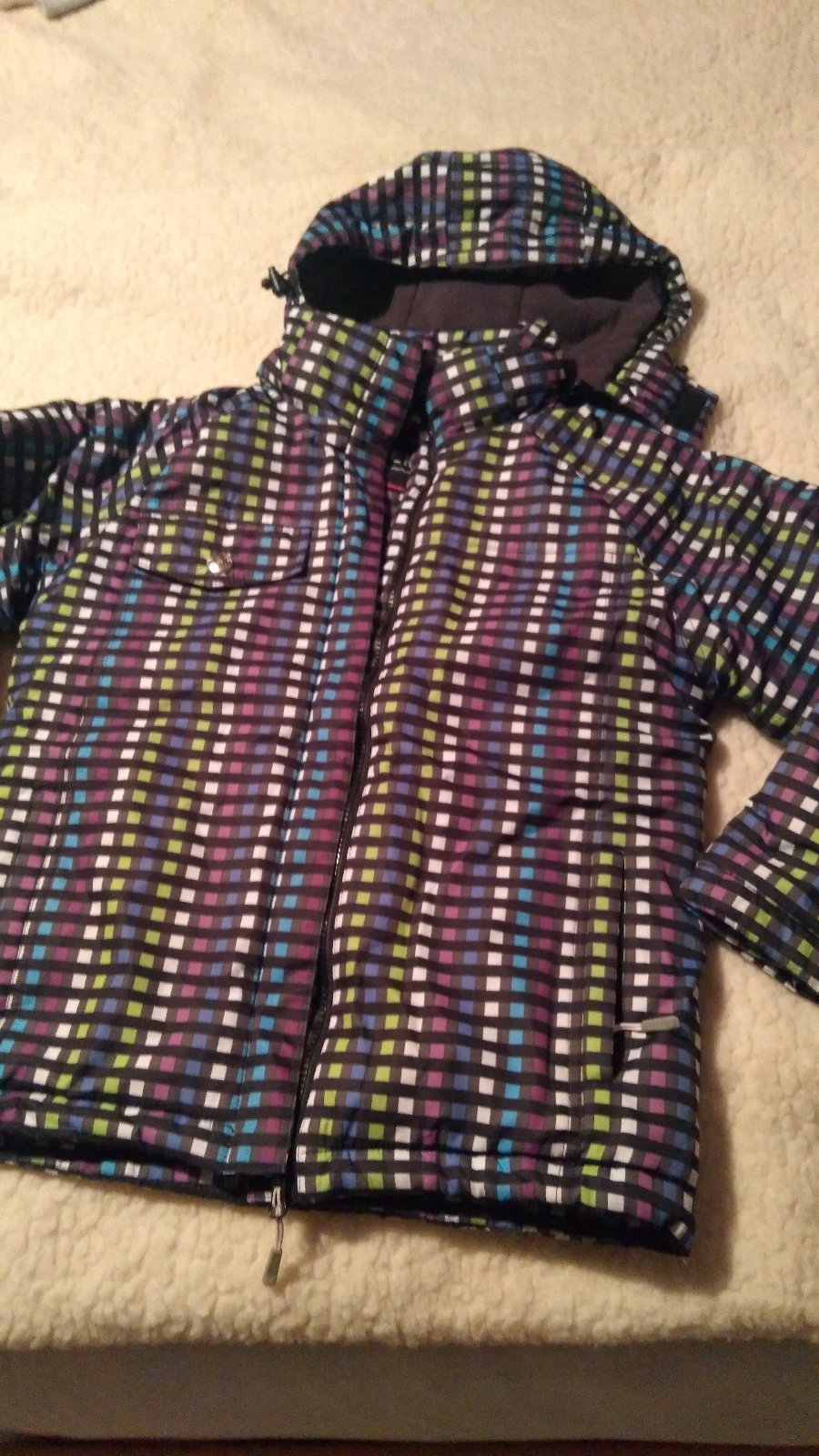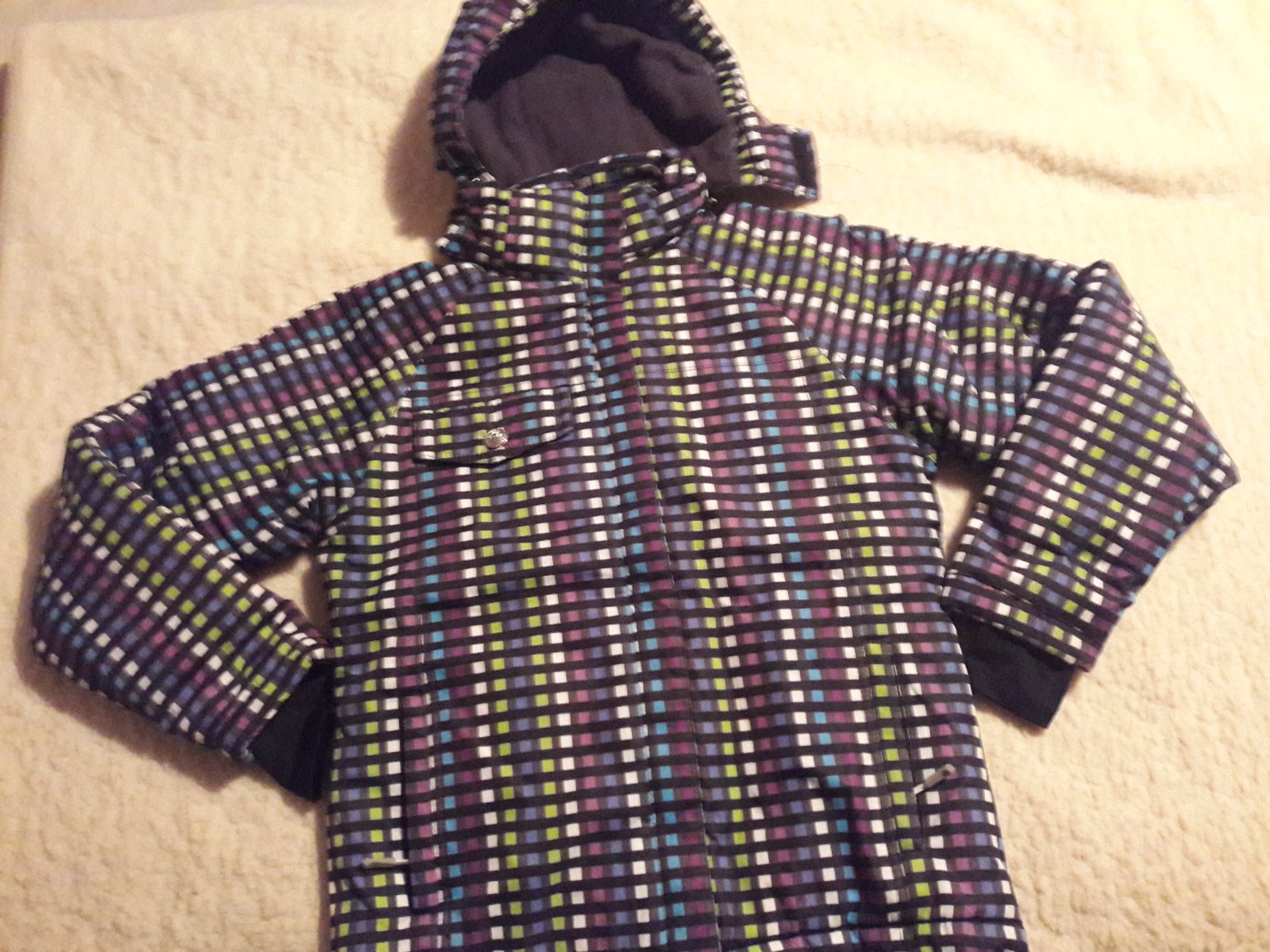 Zachovalá málo používaná lyžiarska bunda, nie je veľmi hrubá. Veľkosť 152/158. Bez viditeľných poškodení, okrem pár fliačikov na podšívke (foto). Zadná dĺžka 63 CM, šírka pod pazuchami 54 cm.