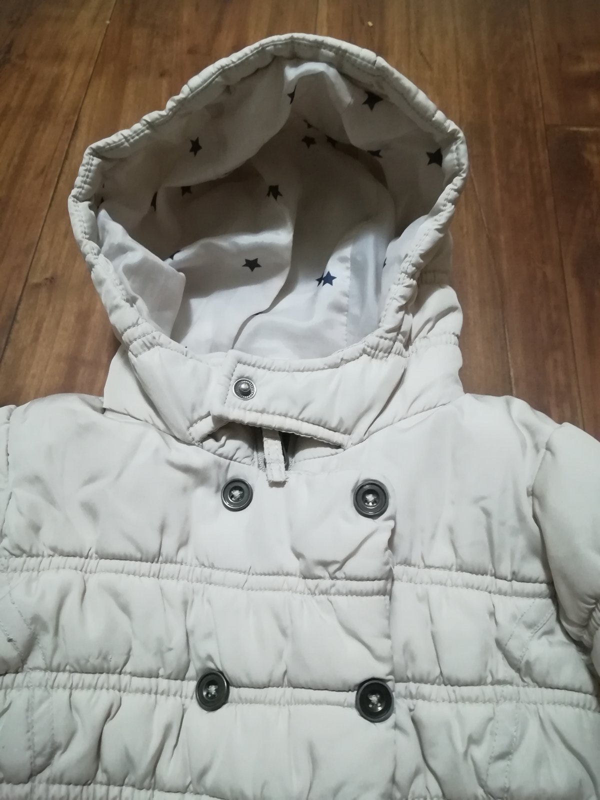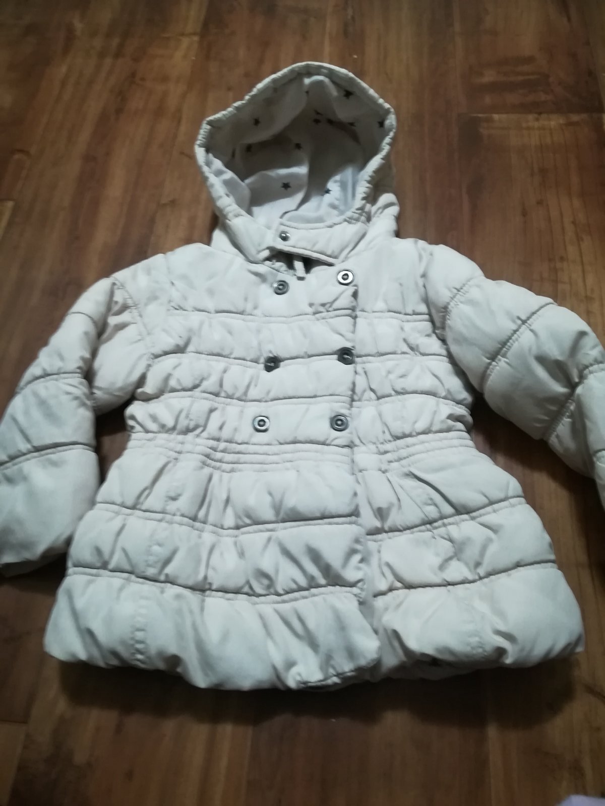 Krásna zimná bundička, skôr ale na miernejšiu zimu alebo chladnejšiu jar. Vo veľmi peknom nosenom stave. Rukáv od krku 43cm, dĺžka 42cm, šírka 34cm