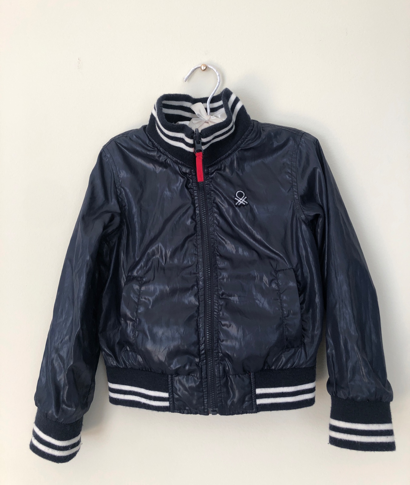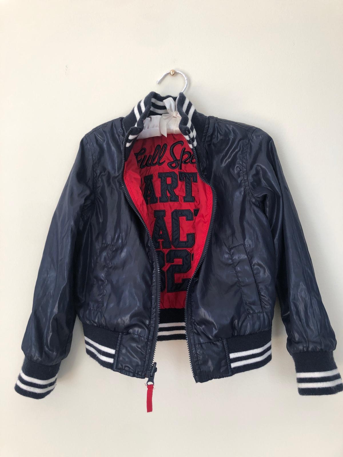Nosená krátko, v super stave. Jediná vada sú chýbajúce 2 zuby na zipse, avšak zapínanie je bezproblémové - na pohľad to nie je povšimnuteľné. Zips sa zapína bezproblémovo - z obidvoch strán. Aj z červenej, aj z modrej strany sú po bokoch vrecká na ruky.