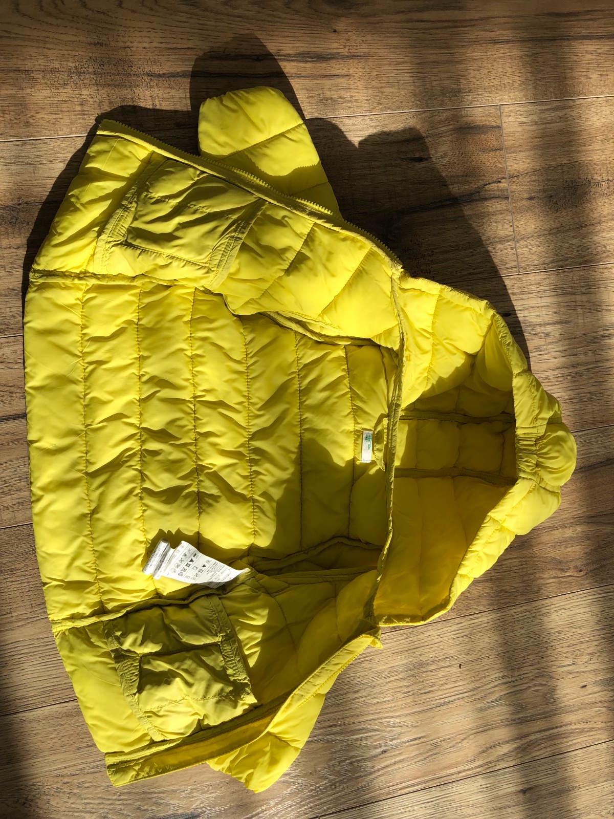 Predám prechodnú bundičku Benetton. Veľkosť 68, 6-9mesiacov, ale my sme nosili dlhšie. Pekná žltá farba. Bundička je bez poškodenia, žiadne flaky, dierky.