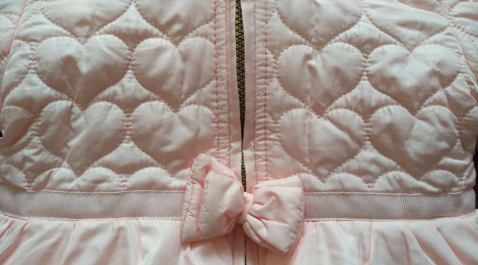 Predam krasnu bundicku,skor asi prechodnu alebo na teplejsiu zimu. Okrem minizmolcekov na patentoch a kozusinky,ktora javi trochu znamky prania,som nenasla ziadne poskodenia a nedostatky. Podsita flisom s vynimkou rukavov. Dlzka 39 cm,dlzka rukava od krku 39 cm aj s patentom,spodna dlzka rukava s patentom 21,5 cm,sirka pod pazuskami 39 cm,v pase cez maslicku 28 cm. Maslicka sa upina na suchy zips.