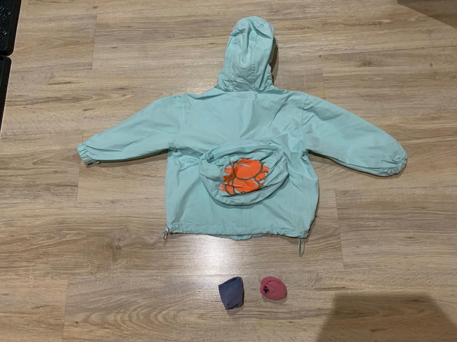Predam bundu da sa snej urobit tasticka nie je sustiakovy material nosena ale ok posluzi dlzka45cm sirka41cm od krku po rukav43cm da sa stiahnut gumkami po bokoch ako darcek2 ponozky posta1 e obycajne ele nov2