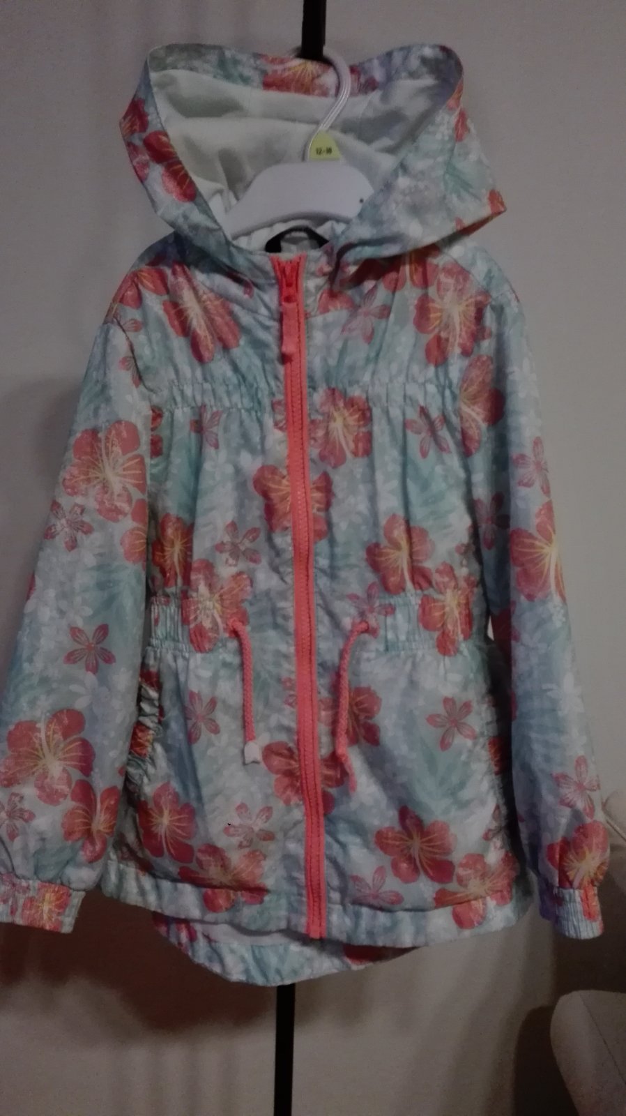 Znacka GEORGE......Velmi pekna pestrofarebna vetrovka ,parka,podsita trickovinou velkost 5-6 rokov.dostupne 2x.celkova dlzka je 51 vpredu,54 vzadu,sirka pod pazuchou 32 a dlzka rukava od nasitia kapucne je 50 cm.
