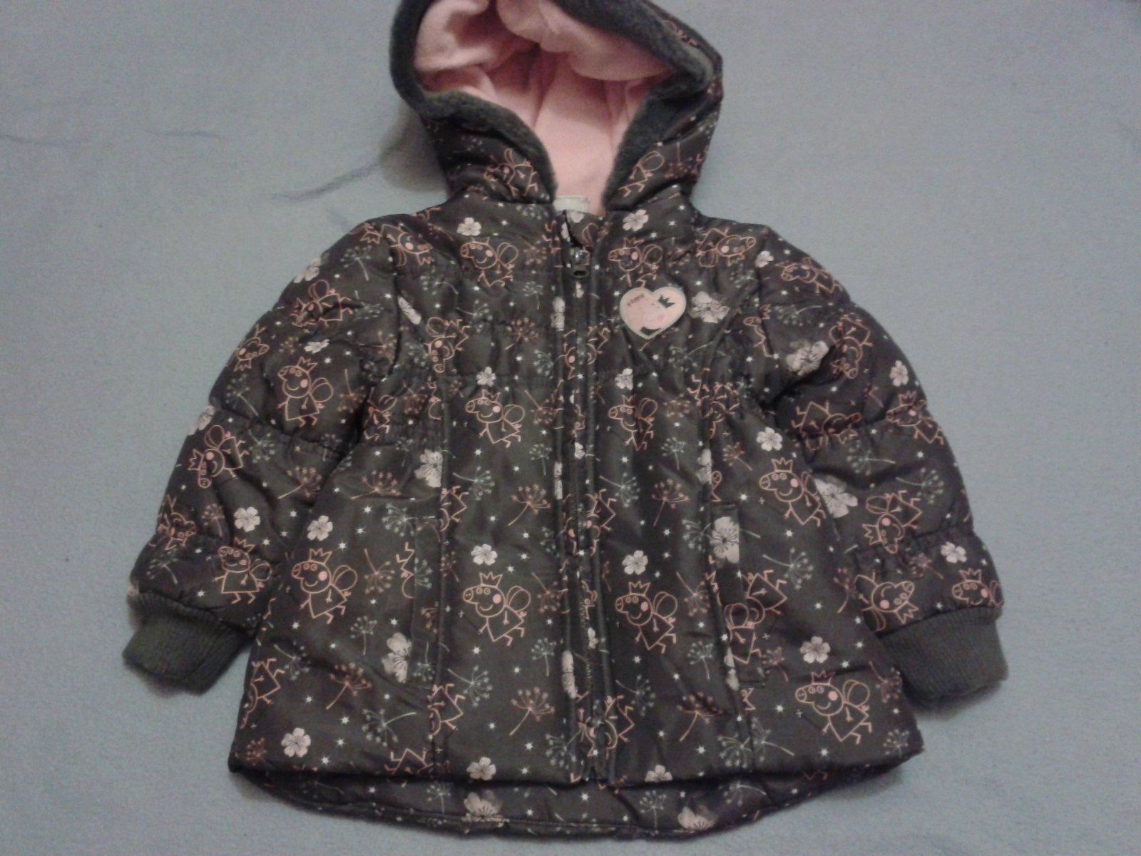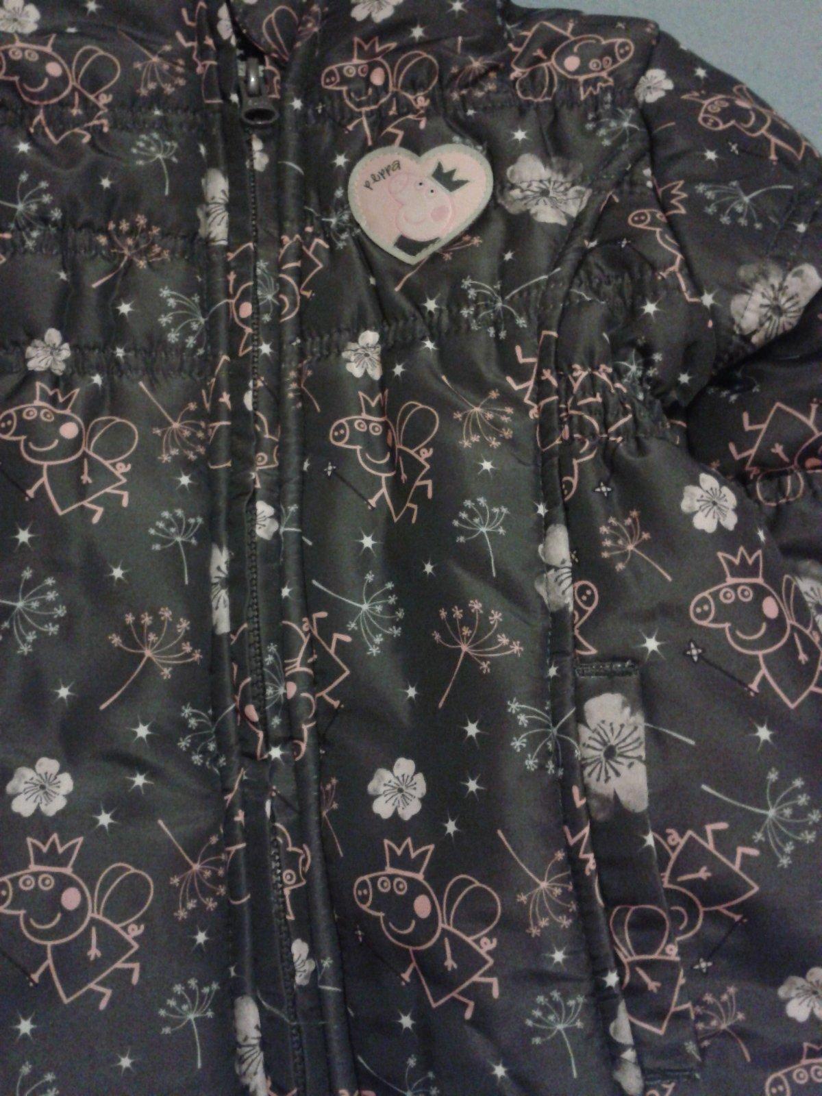 Dievčenská zimná bunda s motívom Peppa Pig.bunda nebola nosená. Značka Dunnes stores. Veľkosť je 92. Dlžka rukáva je 32 cm, dĺžka bundy je 42 cm. Cena bundy je 25 €.