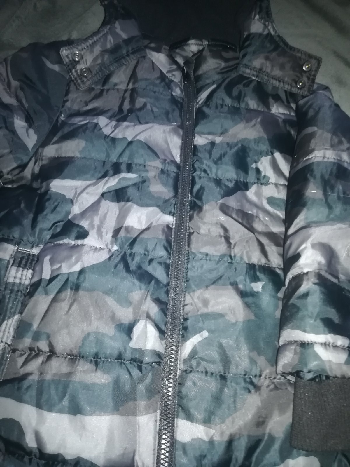 Bunda veľkosť 122 ale je menšia preto prikladám rozmery,, na jednom rukáve je zatiahnuté, a v predu menšie chybičky krásy preto ta cena,, dlzka bundy je 51cm šírka od jednej podpazuchy po druhu 2x 42,5cm, rukav od podpazuchy 34cm aj z patentom, rukav od ramena 47cm +ramrno9cm,,, kapucňa je na pevno, cena 3,30eura myslím ze na dvor ci ihrisko je postačujúca 🤗