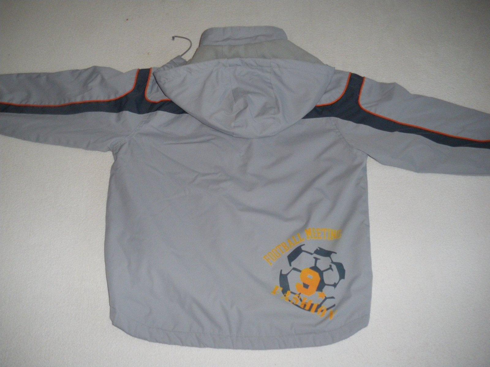 Nosená vetrovka s kapucňou napevno, zips funguje, žmolky na leme. Na štítku vo vnútri napísané meno.