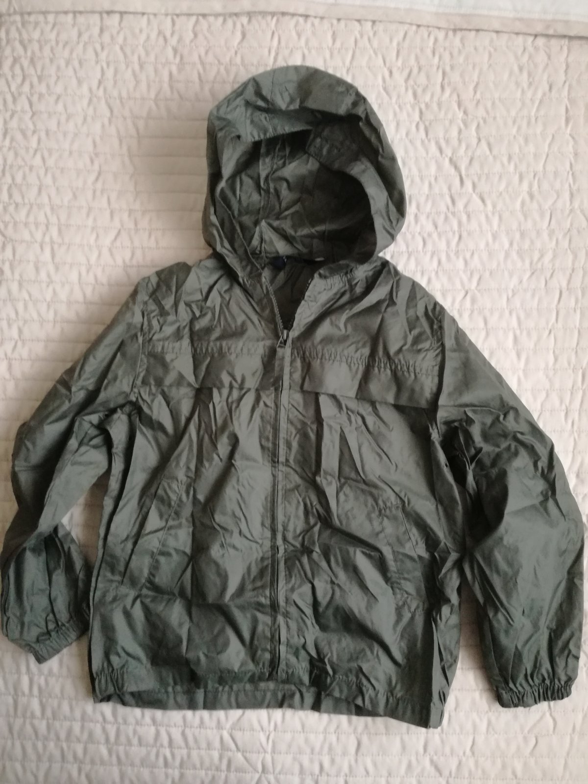 Bunda do dažďa, šuštak, nepodsita, dá sa zbaliť do vrecka na chrbáte, ako nová, šírka 47, dĺžka 53, rukáv od krku 63, písaná veľkosť 10-11 r., Značka X-ceed